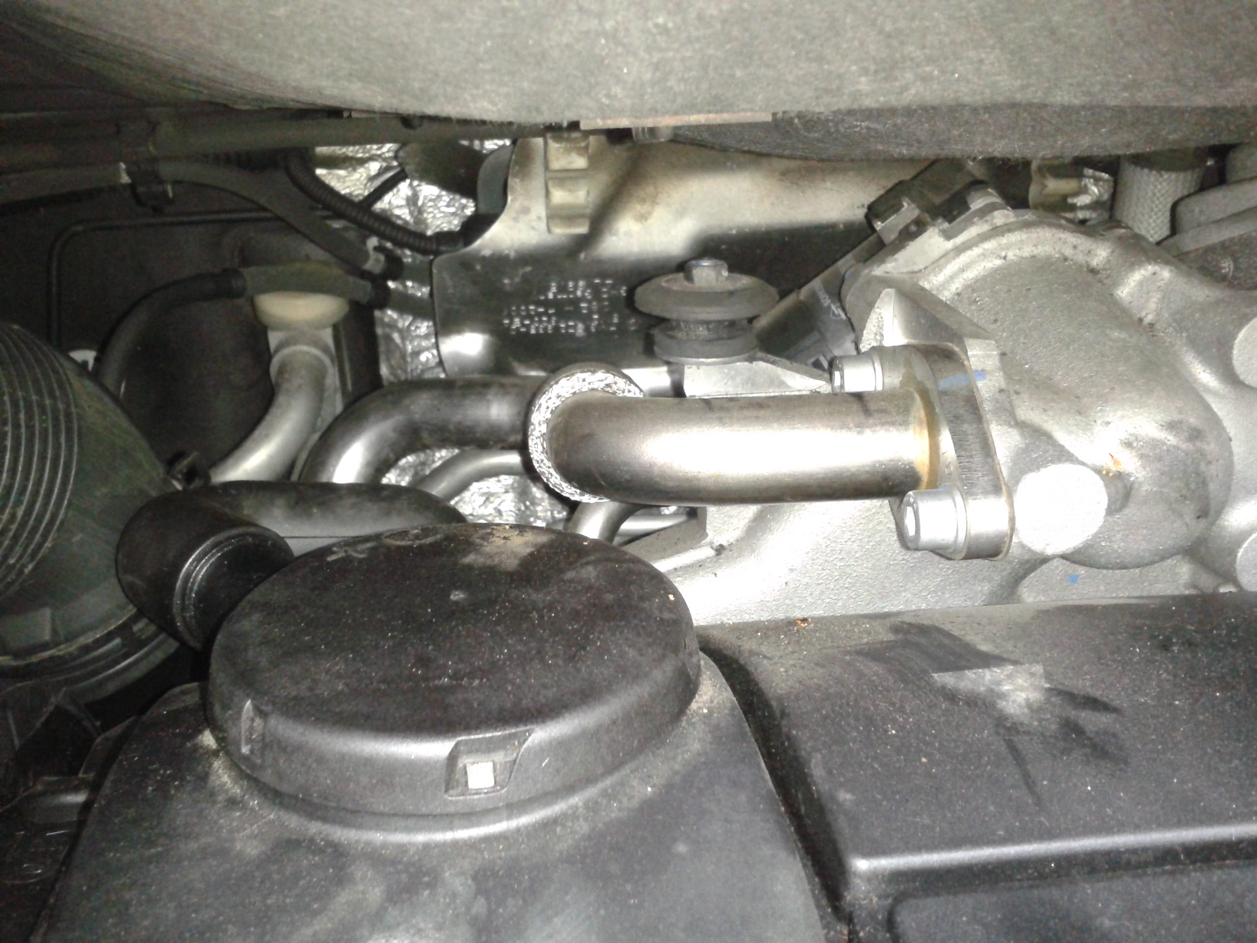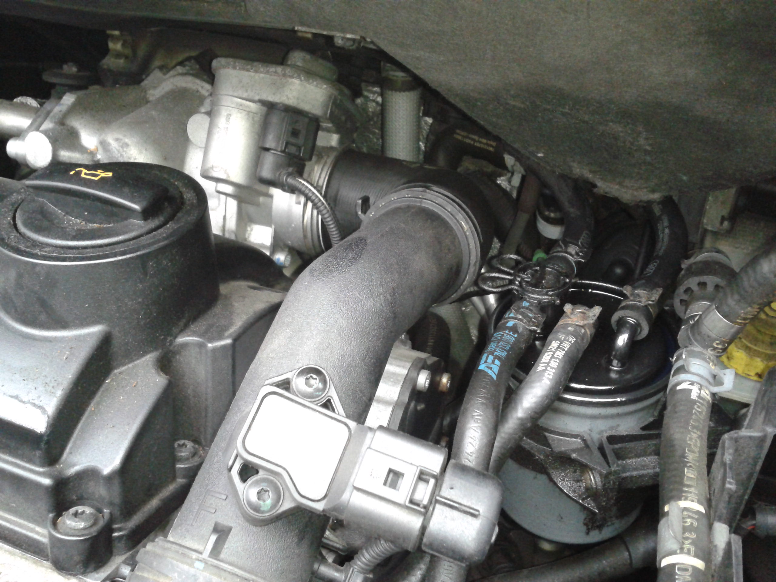 Ich habe mich trotzdem mal (ohne Bühne, Grube o.ä.) drunter gelegt und mr die Differenzdruckleitungen angesehen. Dabei ist mir aufgefallen, dass die Rückseite des Motorblocks, wenn man vom DPF am Turbo vorbeischaut, ölverschmiert ist.
