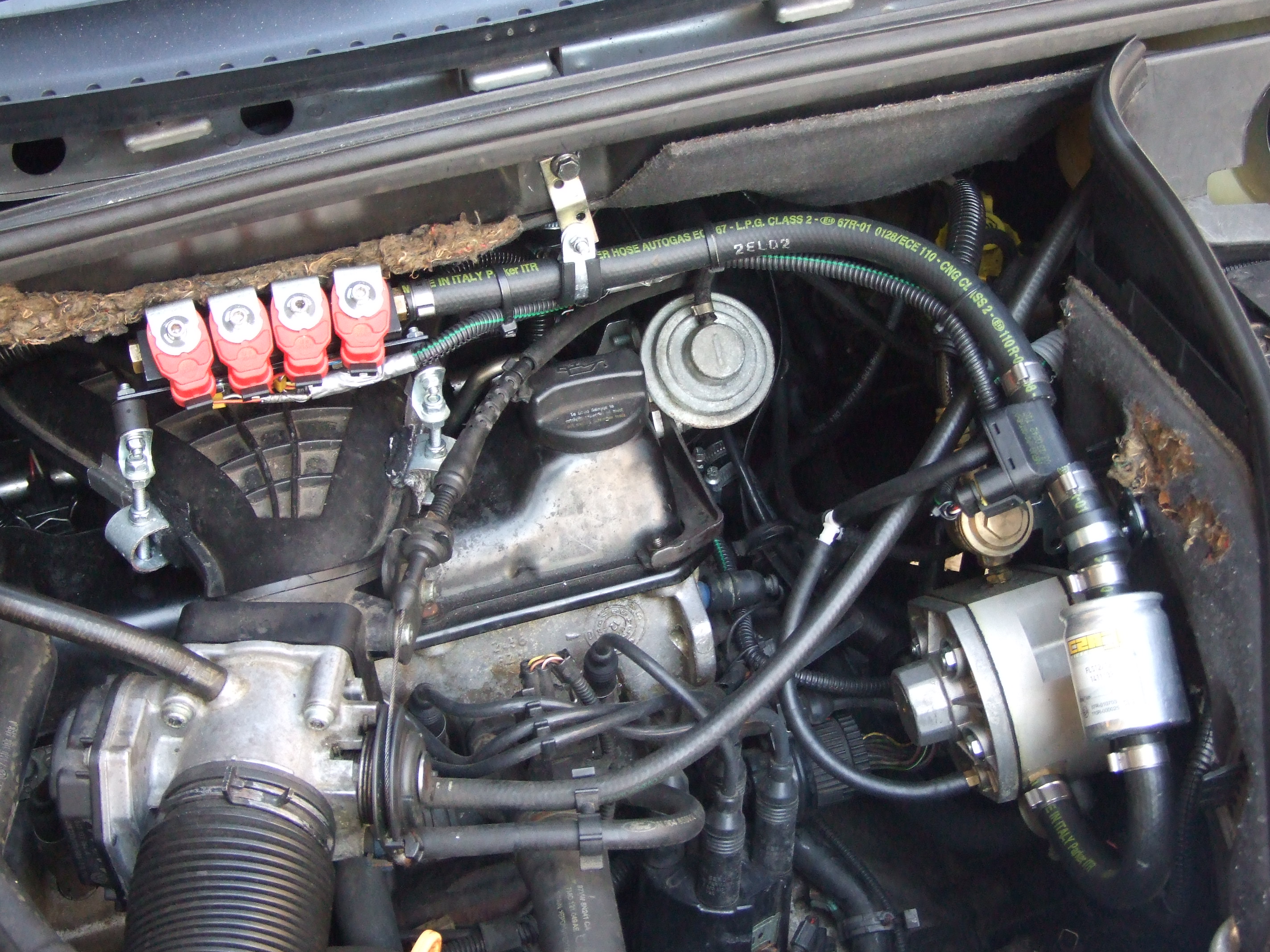Die Zuleitung kommt links gemeinsam mit den Benzinleitungen nach oben.