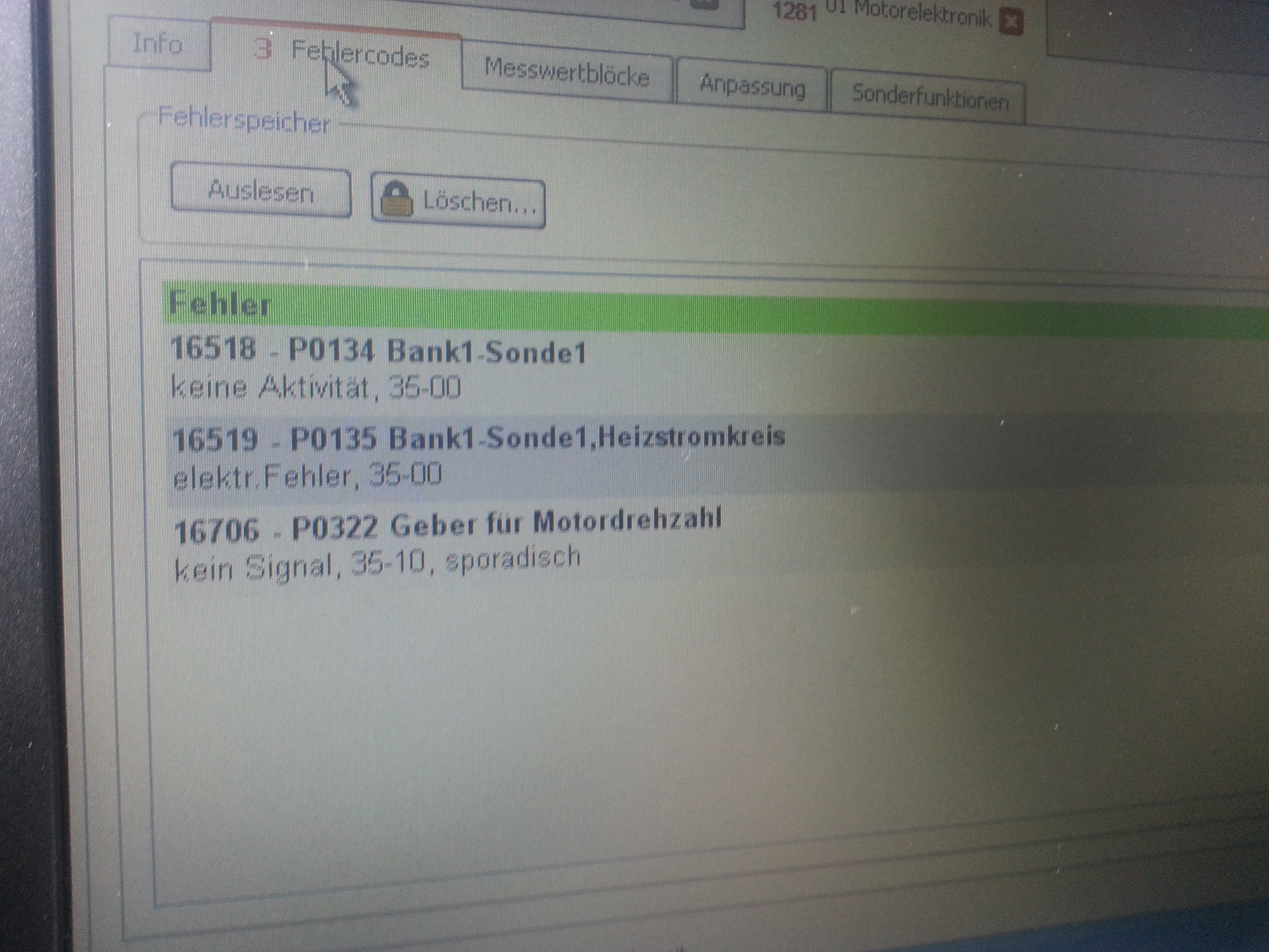 Da mein Diagnosegerät nun am Freitag kam, hab ich gleich mal Fehler ausgelesen.