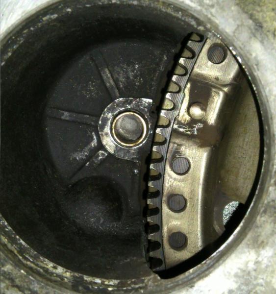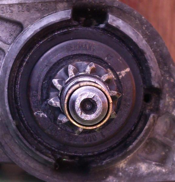 Die Verformung der Einführung wird mechanisch bedingt sein (Schwungrad drückt Anlasser Ritzel weg, somit in Fahrtrichtung. (Auf dem Bild links).