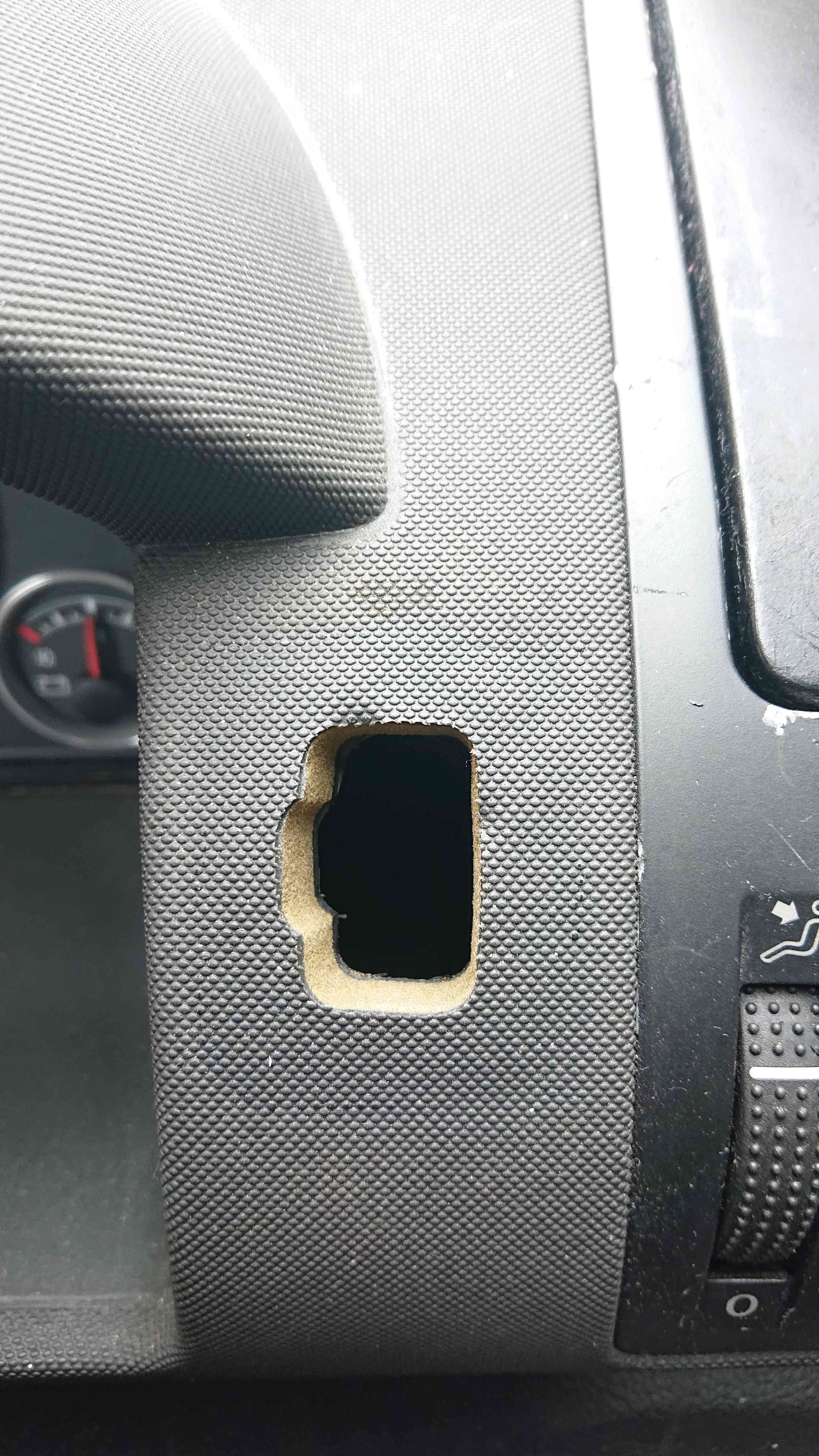 Seit kurzem stolzer Besitzer eines 7M, Baujahr 2005. Der hat jetzt rechts neben dem Cockpit eine Öffnung, wohl für einen Handyhalter. Es ist ein Rechteck mit ner runden Wölbung nach links, das ganze geht konisch.