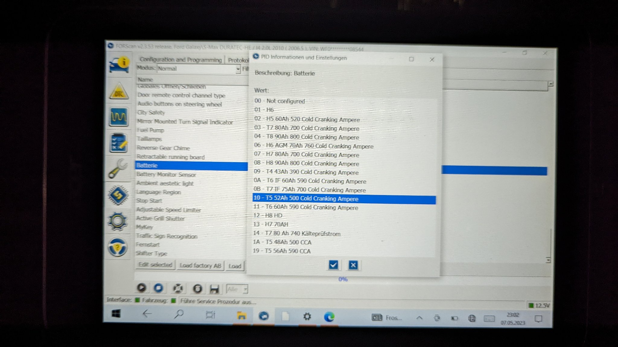 ich habe gestern eine neue Batterie in unseren Galaxy 2010 eingebaut, weil die alte 5 Jahre alt war (Einbau durch ATU) und mir nach einigen Minuten FORScan-Fehlerspeicherauslesen ohne laufenden Motor die Warnung “Batteriestand niedrig” angezeigt wurde.