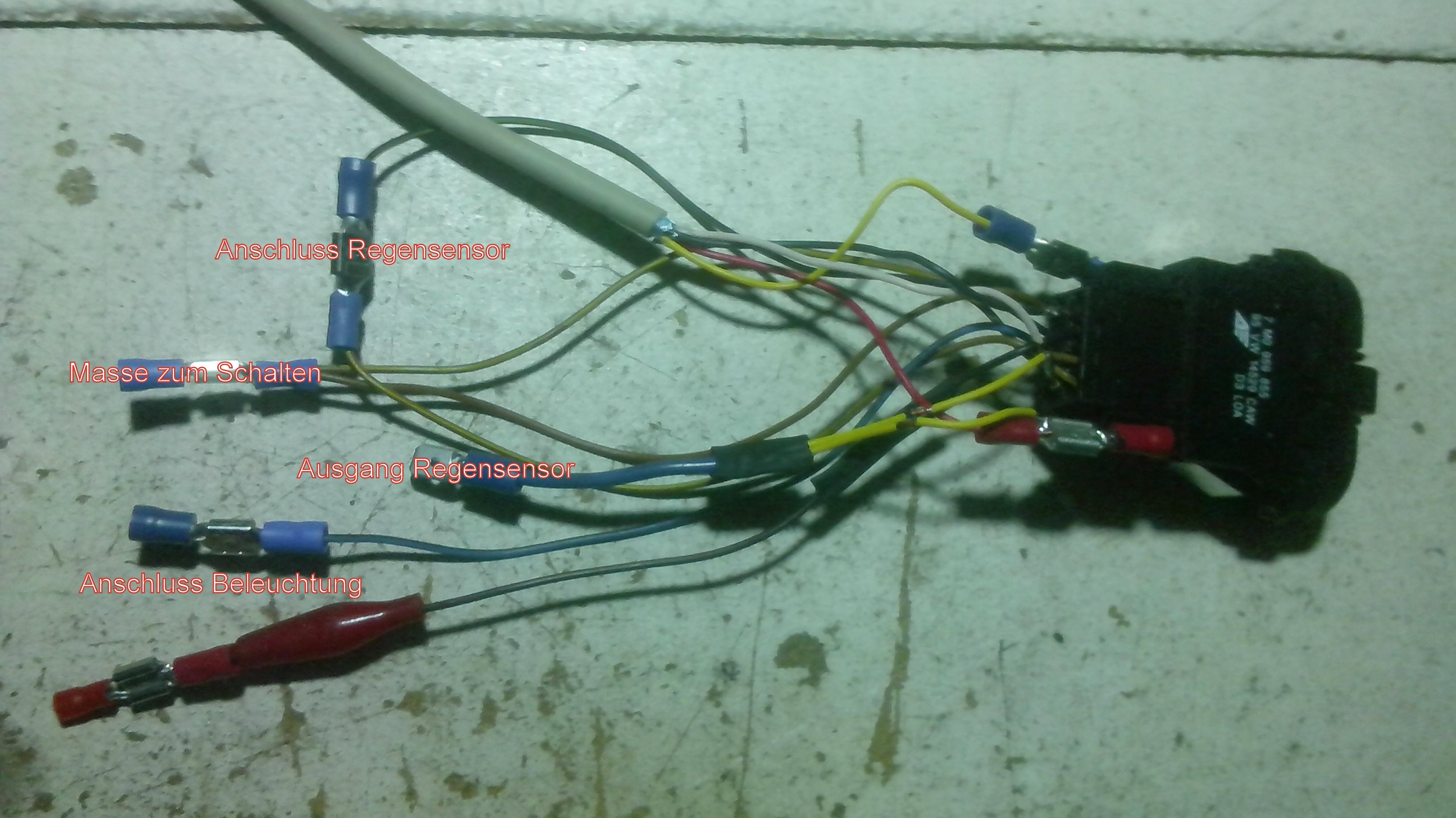 Den Stecker der oben beschriebenen Anschlüsse anklemmen, ein 4 adriges Kabel nach hinten verlegen und die Platine anklemmen.