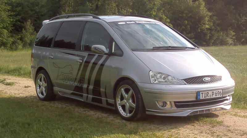 Im Frühjahr dieses Jahres wollte ich dann meiner Frau eine besondere Überraschung bereiten. Unter dem Vorwand, bei „ihrem“ Galaxy einige Lackschäden ausbessern zu lassen, haben wir in relativ kurzfristiger Zeit mit Hilfe einiger Freunde und Firmen den kompletten Wagen verändert: Es wurde ein Bodykit montiert, dabei die Heckschürze komplett ummodeliert, das eine oder andere gecleant, die Motorhaube verlängert, die Frontscheibe gewechselt, die Heckscheiben foliert, das Fahrwerk und die Bremsanlage modifiziert, der Endschalldämpfer und die Räder ausgewechselt, eine kleine Hifi-Anlage installiert und der Lack komplett erneuert - inklusive einem kleinen Airbrush für die Seitenspiegel.