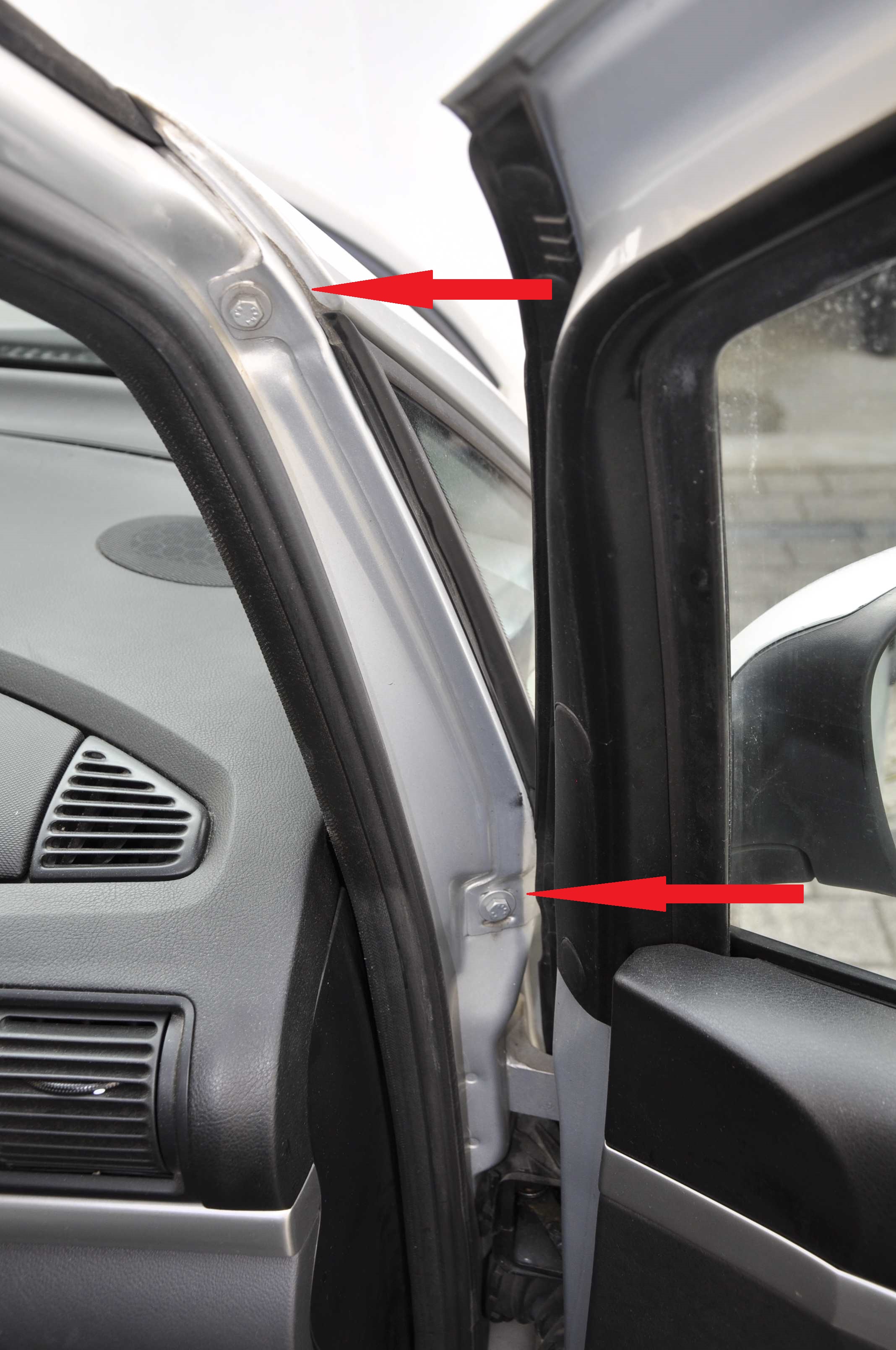 ein stabiles, sehr scharfes Messer, um die Karosseriedichtmasse hin zur Tür aufzuschneiden.