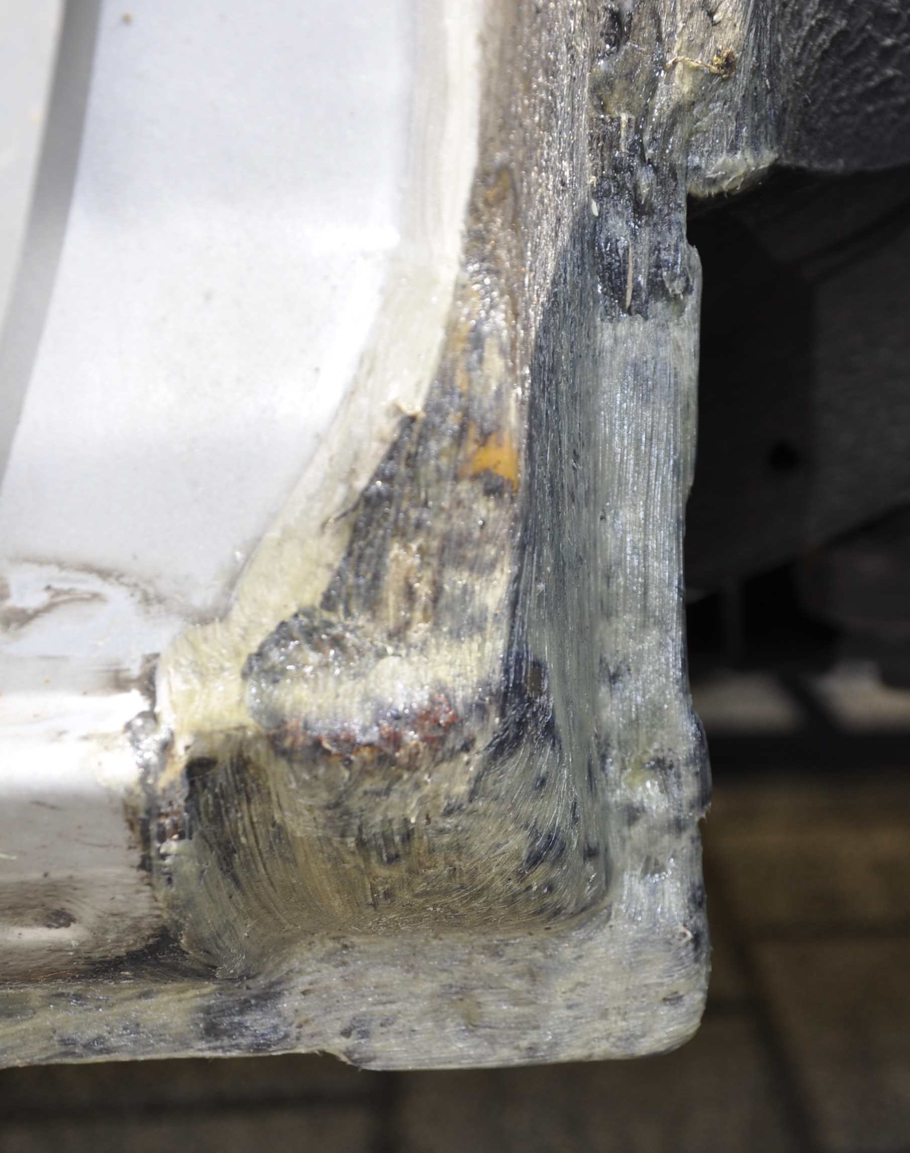 Nach einem Vorschlag hier aus dem Forum habe ich Dekasyl MS-2 zum Ankleben des „neuen“ Kotflügels verwendet. Es ist in schwarz, weiß und grau erhältlich.