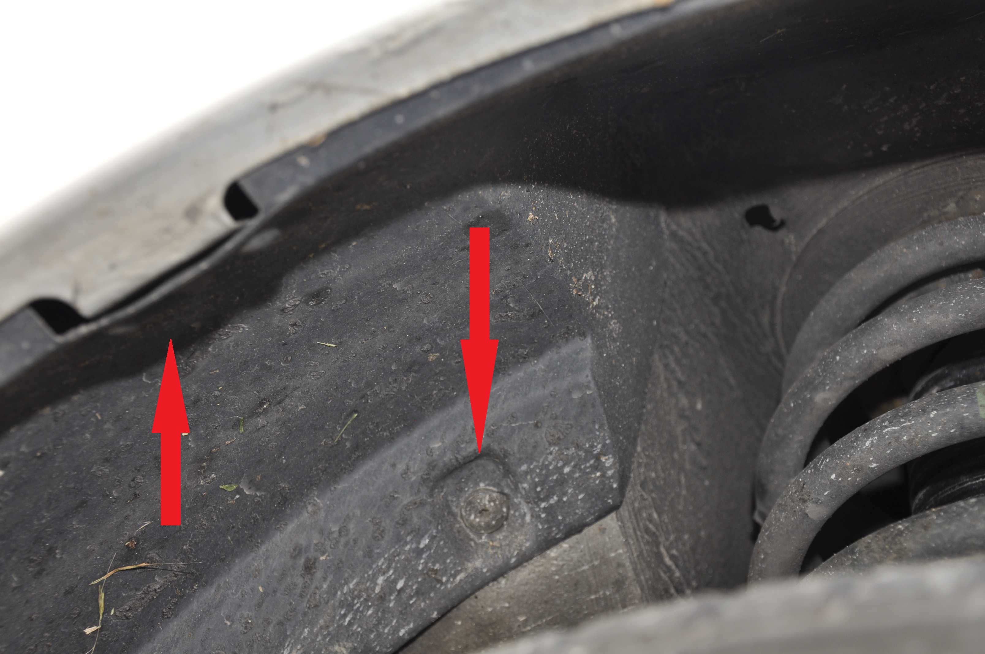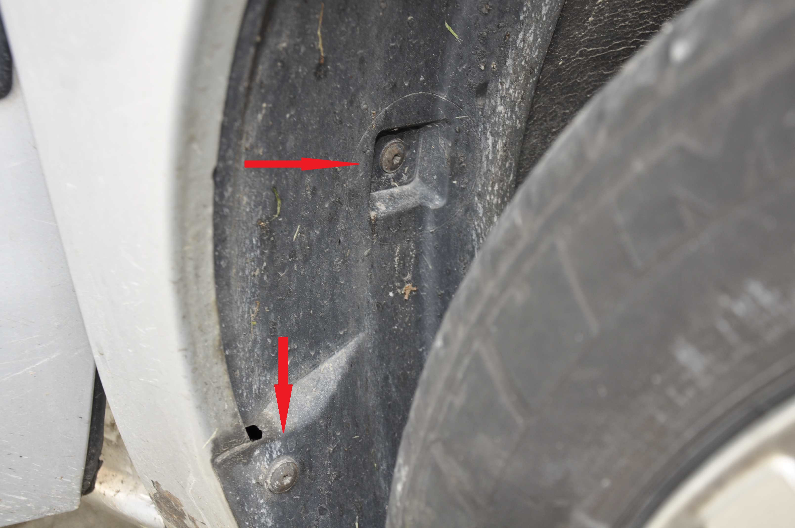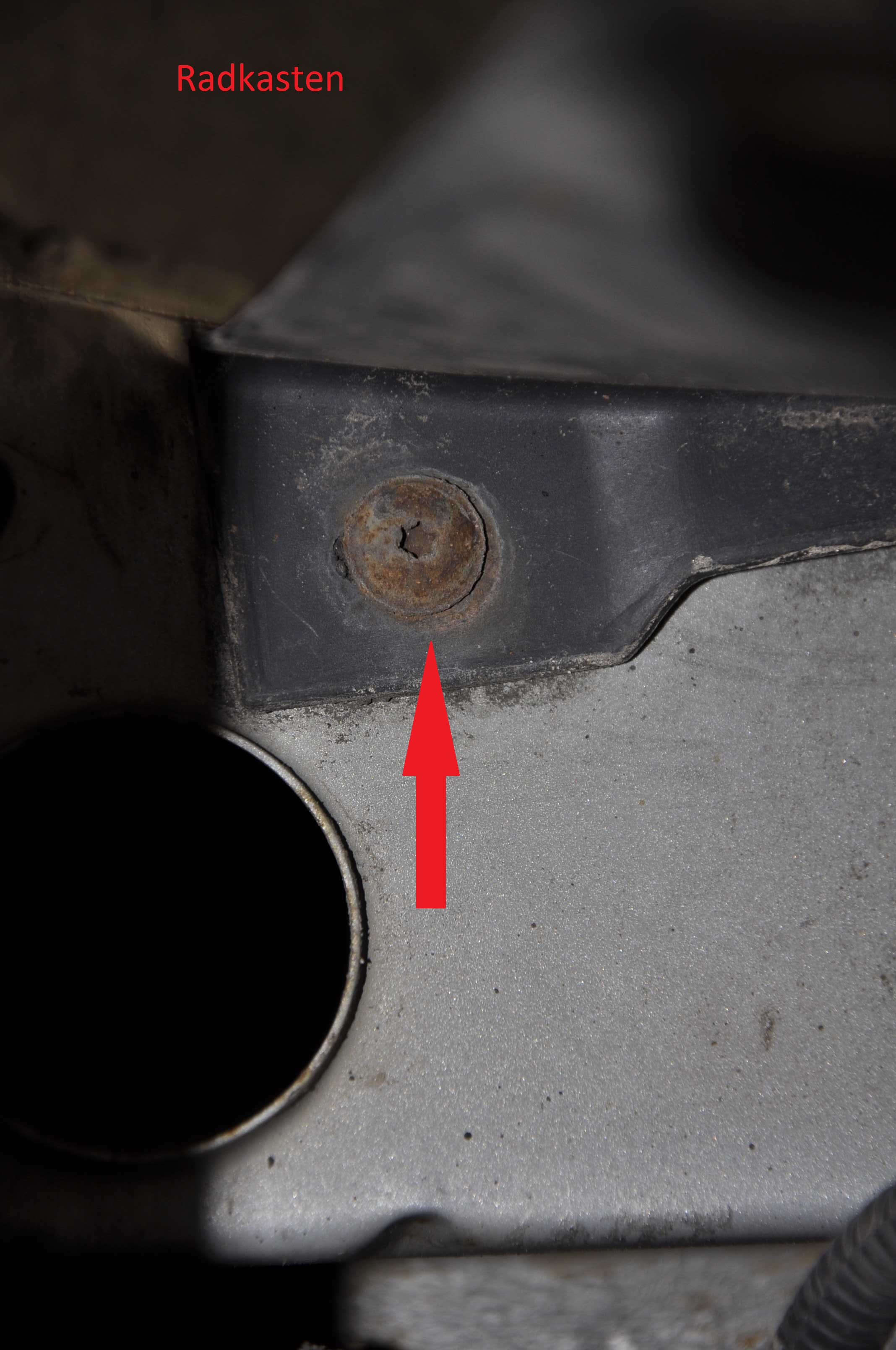 Zunächst muss der Innenkotflügel ausgebaut werden. Dazu sind 10 Torx-Schrauben innen im Radkasten und 1 Torx-Schrauben vor dem Radkasten zu lösen.