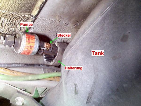 Wem bei abgerosteten Kontakten die 130 Euro für eine neue Pumpe zu viel sind, kann versuchen, die Kontakte soweit zurückzuschleifen, dass man an den Stumpf gesunden Metalls ein Kabel anlöten kann. Sind die Kontakte komplett „abgefault“, kann man trotzdem mit etwas Bastelgeschick versuchen, neue Kontakte in das Steckergehäuse „einzuschweißen“.