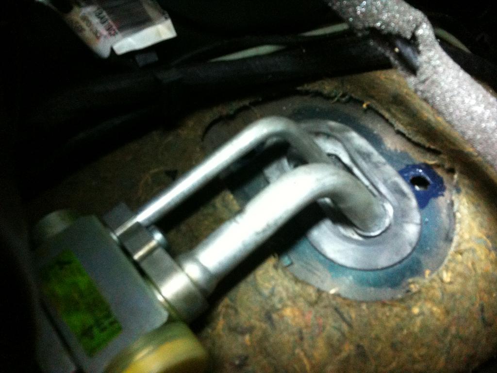 zum Glück musste ich den Motor nicht ausbauen so wie wir es beim Teilespender gemacht haben nur die front musste ab wegen der Leitung zwischen erstem Verdampfer und Kompressor der ( unterm dem rechten Motorhalter ). Der Rest war einfädeln, zusammenstecken und festschrauben ( kleiner Tipp die Dichtungen gleich ersetzen ). Die Durchführung im linken Radlauf ist auch schon da gewesen, Kabel sind zwischen einfach und doppel klimatronic gleich der Kompressor auch nur die füllmenge wird mehr.