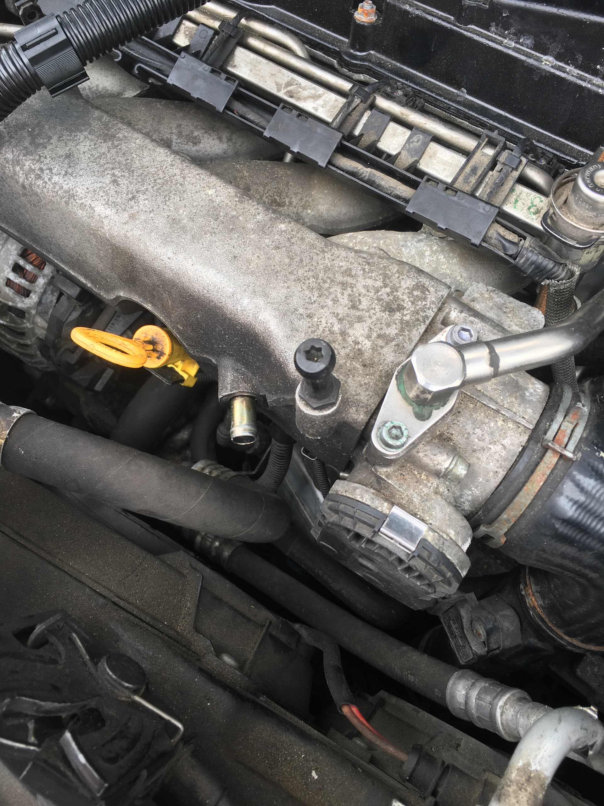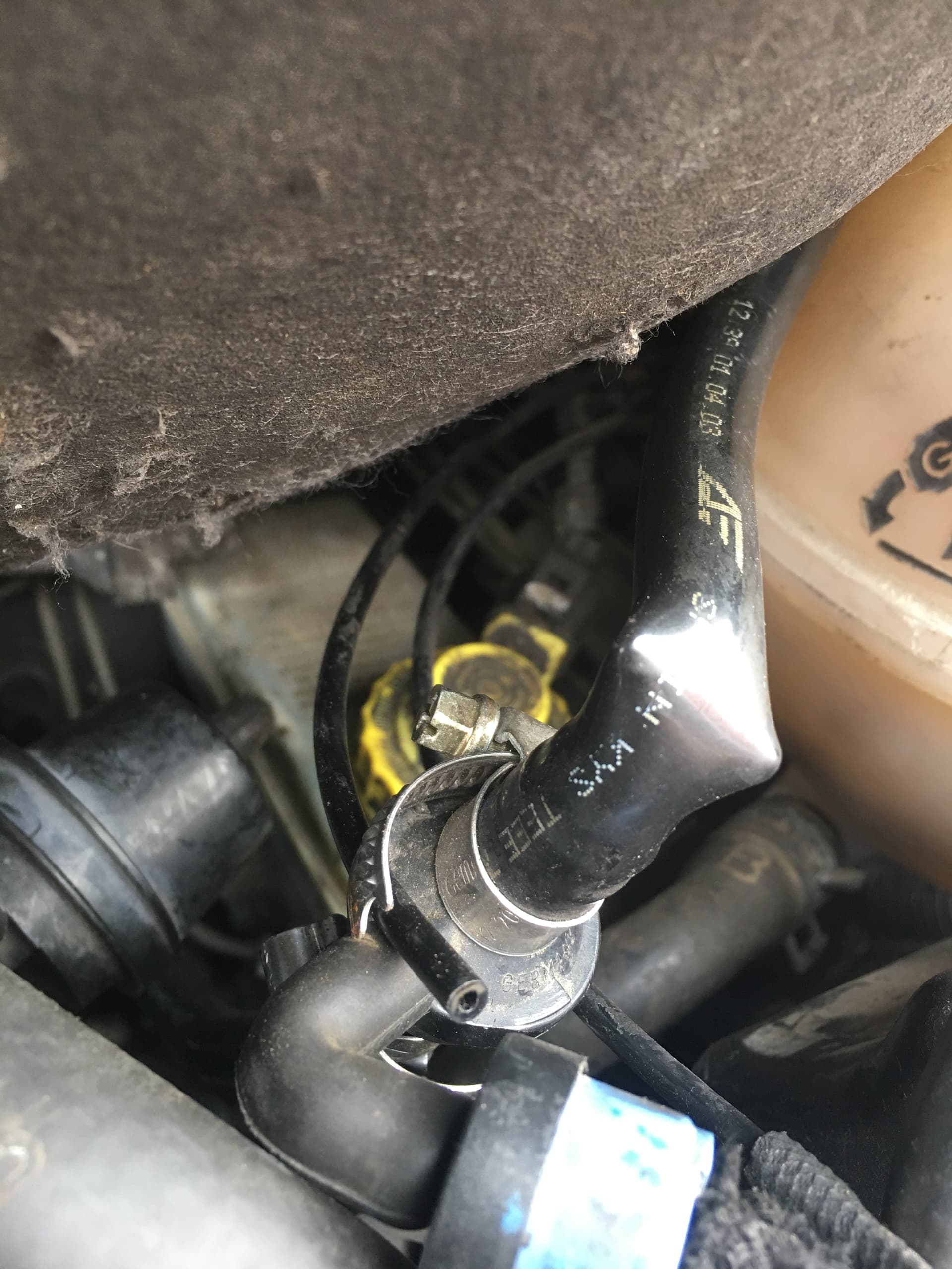 Genau der Unterdruckschlauch wurde dorthin gelegt, hatte mir die Sicht auf das 90 Grad Winkelstück versperrt, wo der andere Schlauch angeschlossen wird.