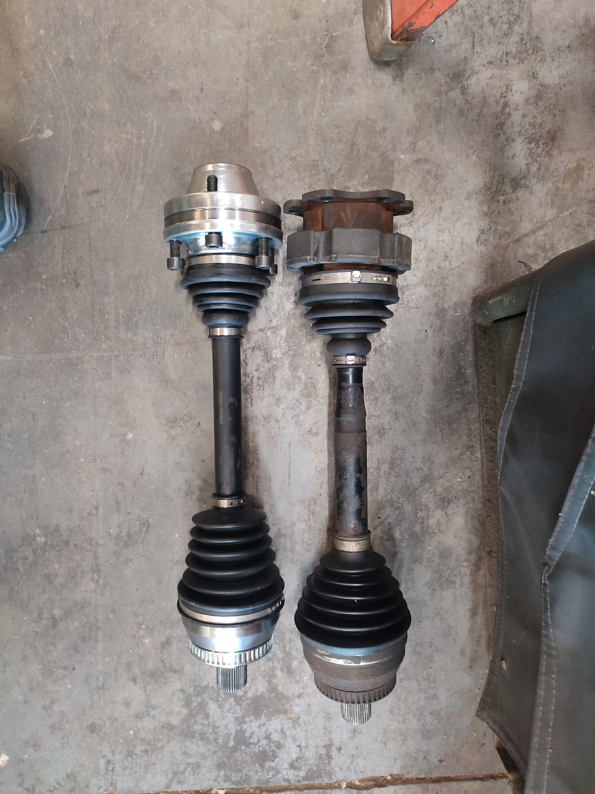 Nein, habe ich nicht da es vermutlich nicht viel bringt. Ich habe ja die Steck- und die Flanschwelle getauscht da sie defekt waren. Da aber an der neuen Flanschwelle der kleinere Lochkreis für das homokenetische Gleichlaufgelenk ist un nicht die Aufnahme für das Tripodengelenk, mußte ich auch eine neue Welle bestellen. Ich verstehe nur nicht was nicht passt…