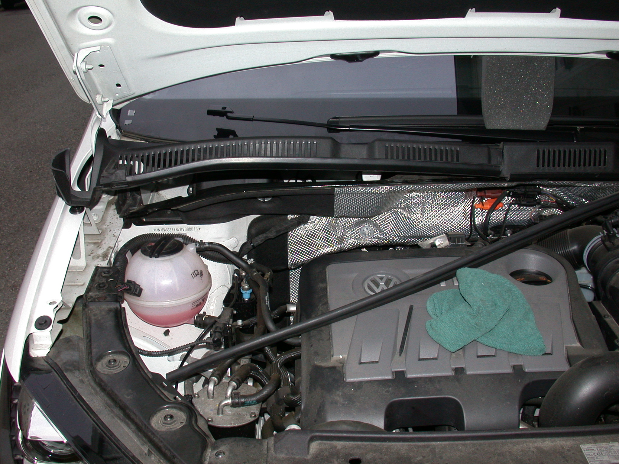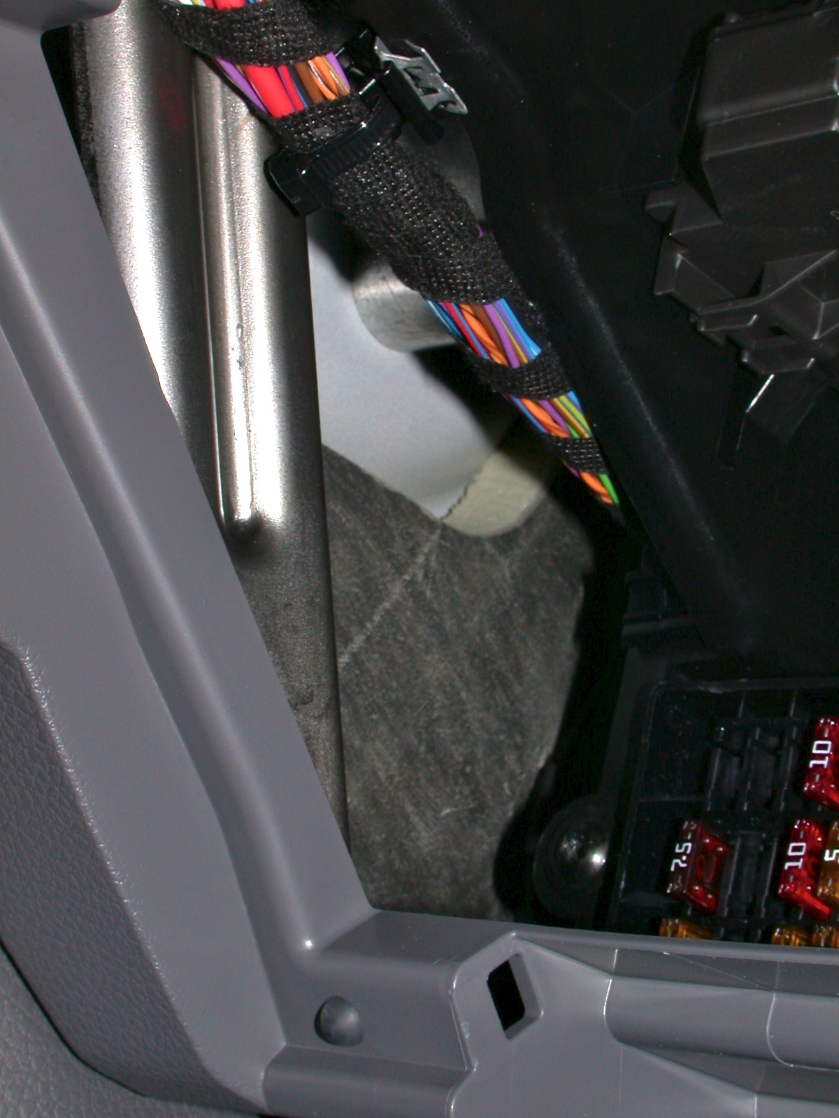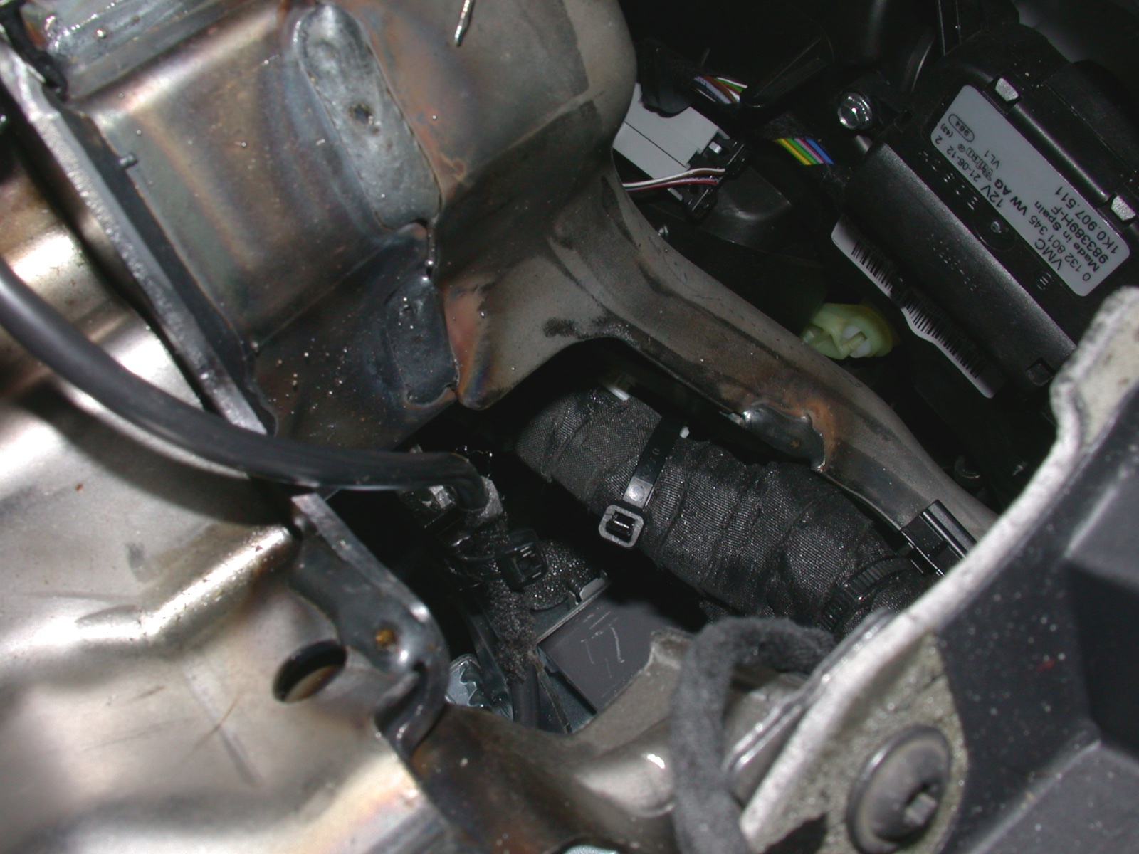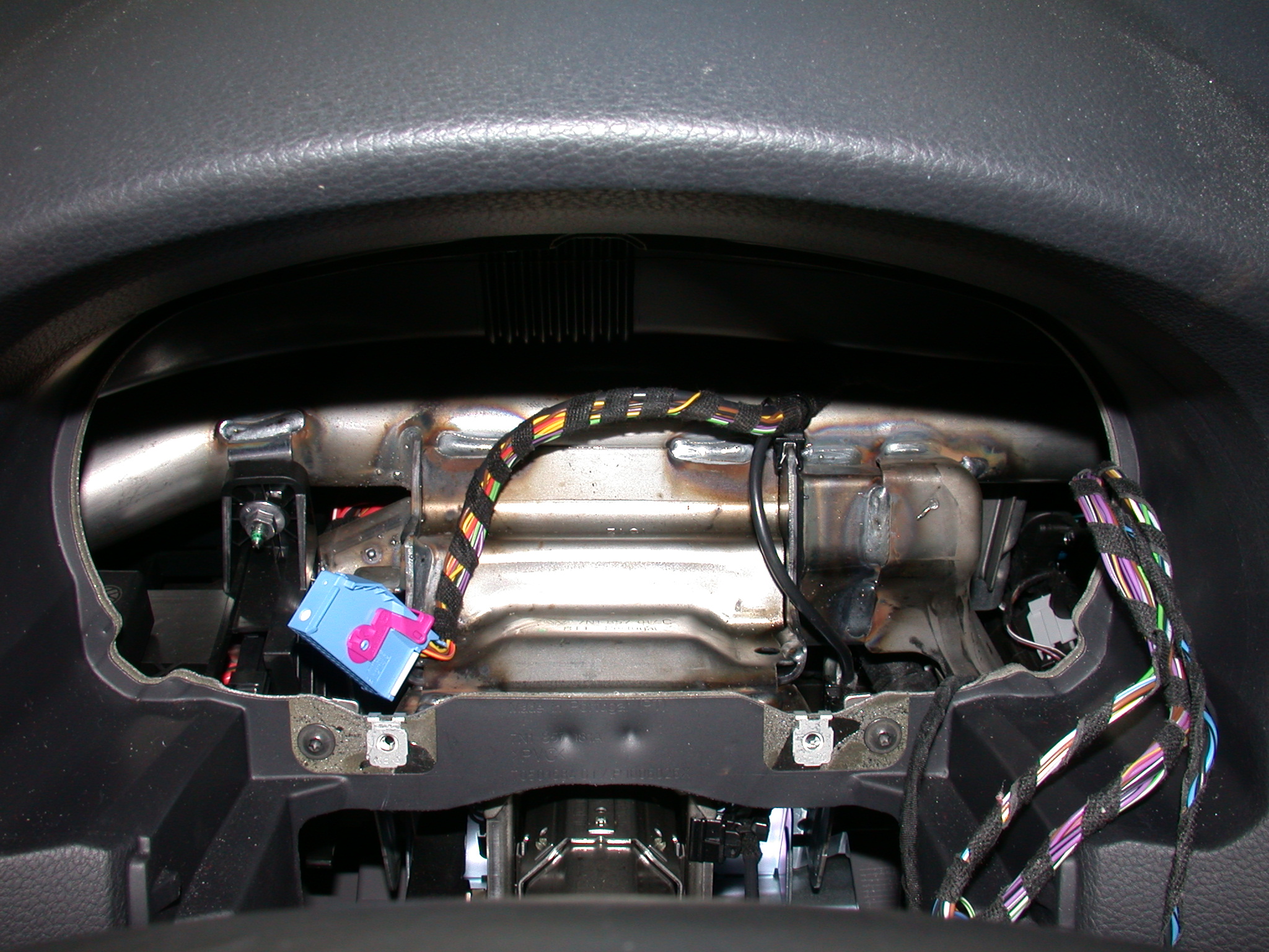 Fahrerfussraum, Knieairbag, Lenksäule, Kühlmittelrohre Heizung