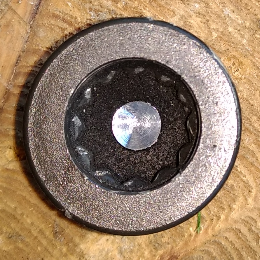 3b. In den 16 Vielzahn versucht ein Loch zu bohren wegen der Ablassschrauben. Ist natürlich gehärtet . Also voooorsichtig bei der Ablassschraube (Aluminium) den Stift abgebohrt (8,5mm), weil ich nicht noch eine Nuss extra holen wollte ca.10 plus Versand