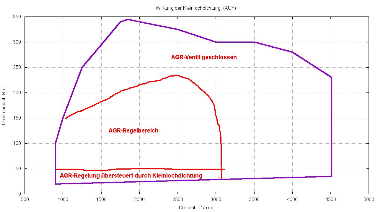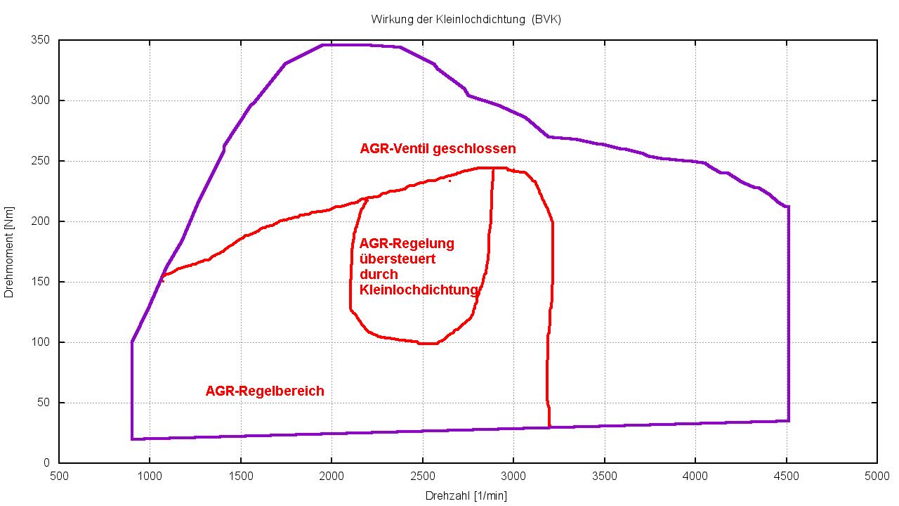 - Den Übersteuerungsbereich der AGR-Regelung durch die Kleinlochdichtung.
