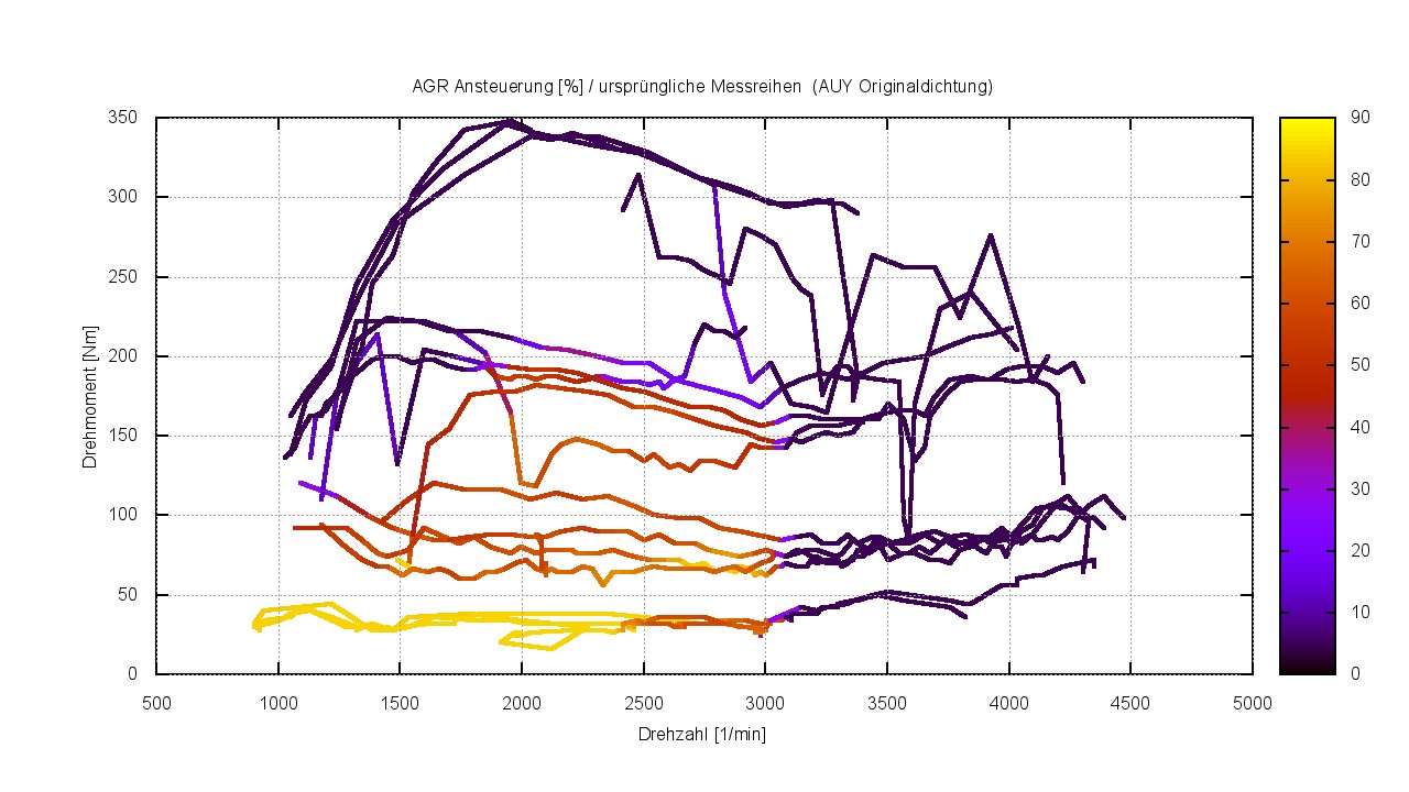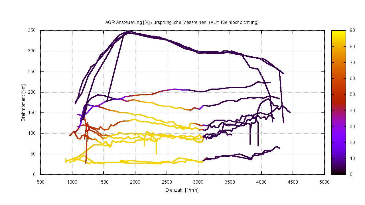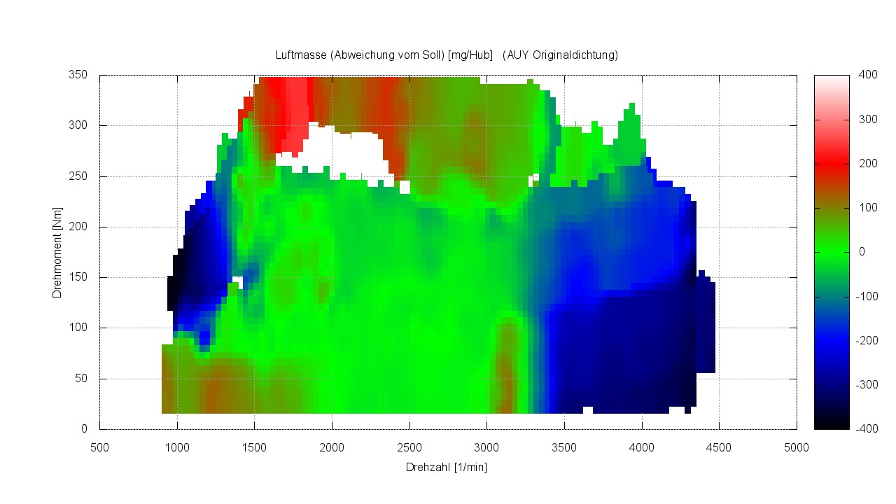 PS. Um also beim AUY in den relevanten Bereich reinzukommen, wo die Kleinlochdichtung etwas bewirkt muss man mit kleinster Last langsam dahintuckern. Z.B. im Stau in Schrittgeschwindigkeit rollen. Alleine das Anfahren im Stop’n’Go liegt schon deutlich über 50 Nm.