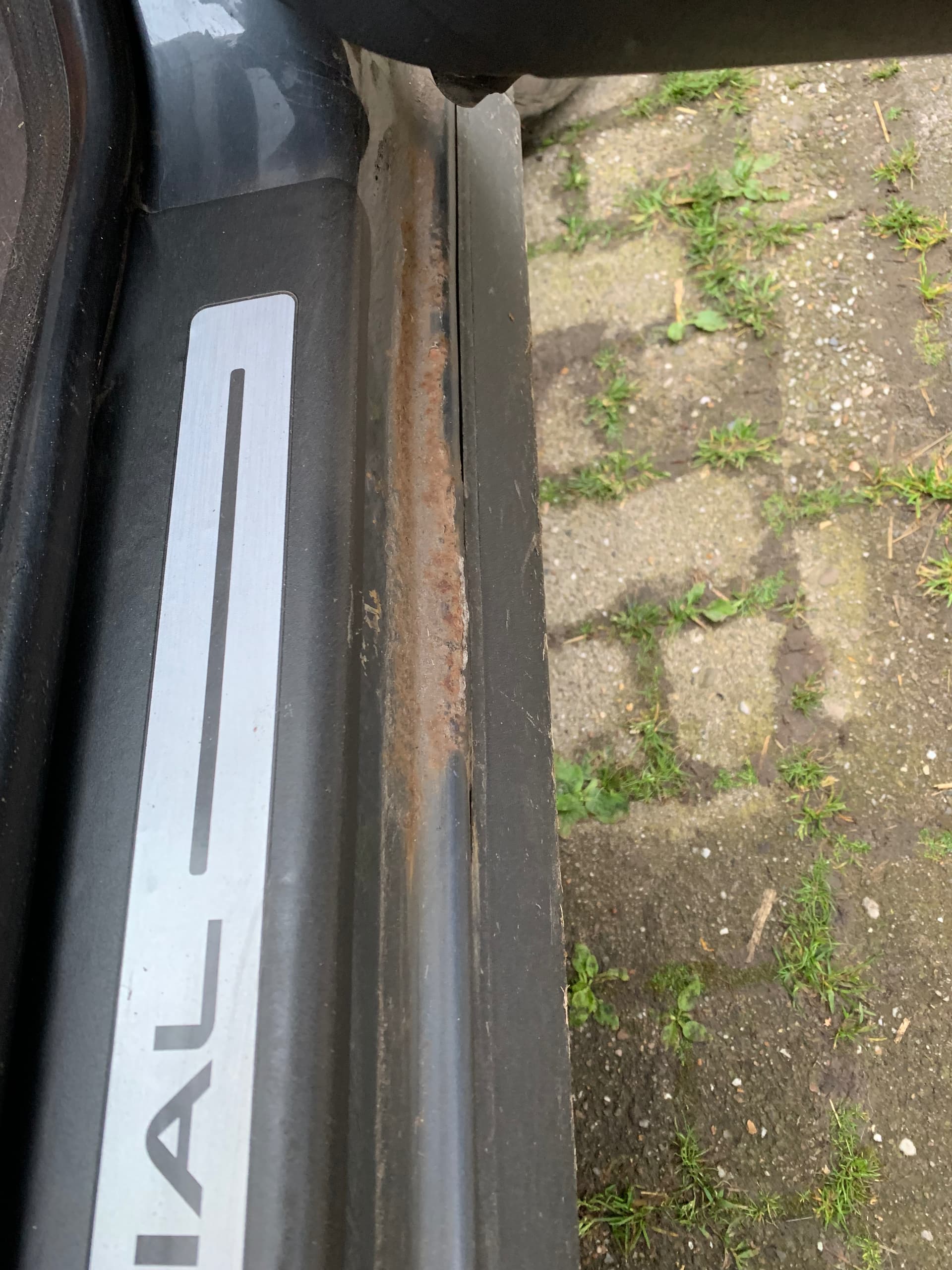Und ich muss leider nicht nur unten drunter gucken, so sieht der Einstieg Beifahrer aus. Habe ich lange nach dem Exodus meiner Ex nicht benutzt, bzw. drauf geachtet, das Gummi in der Tür fehlt.