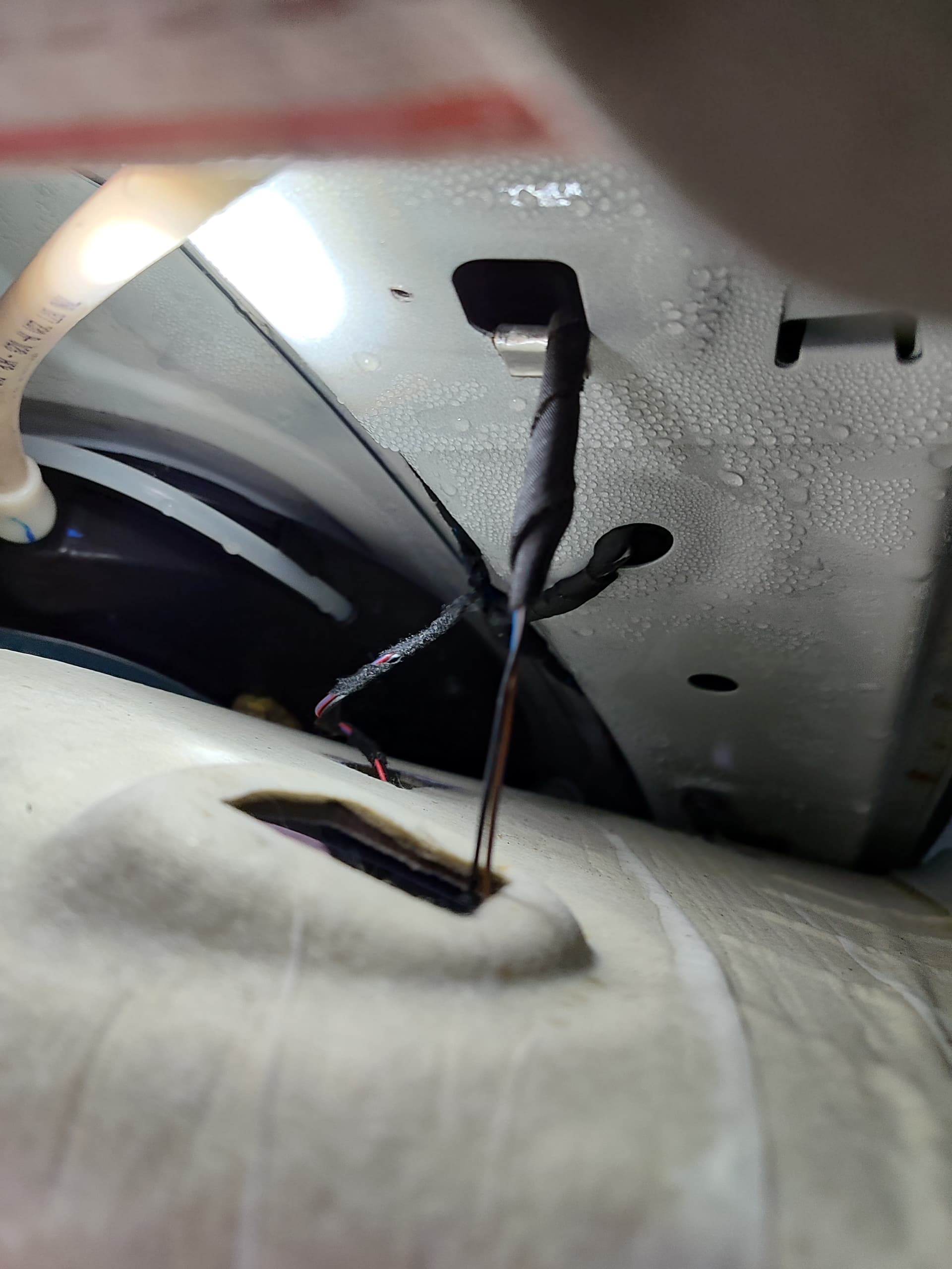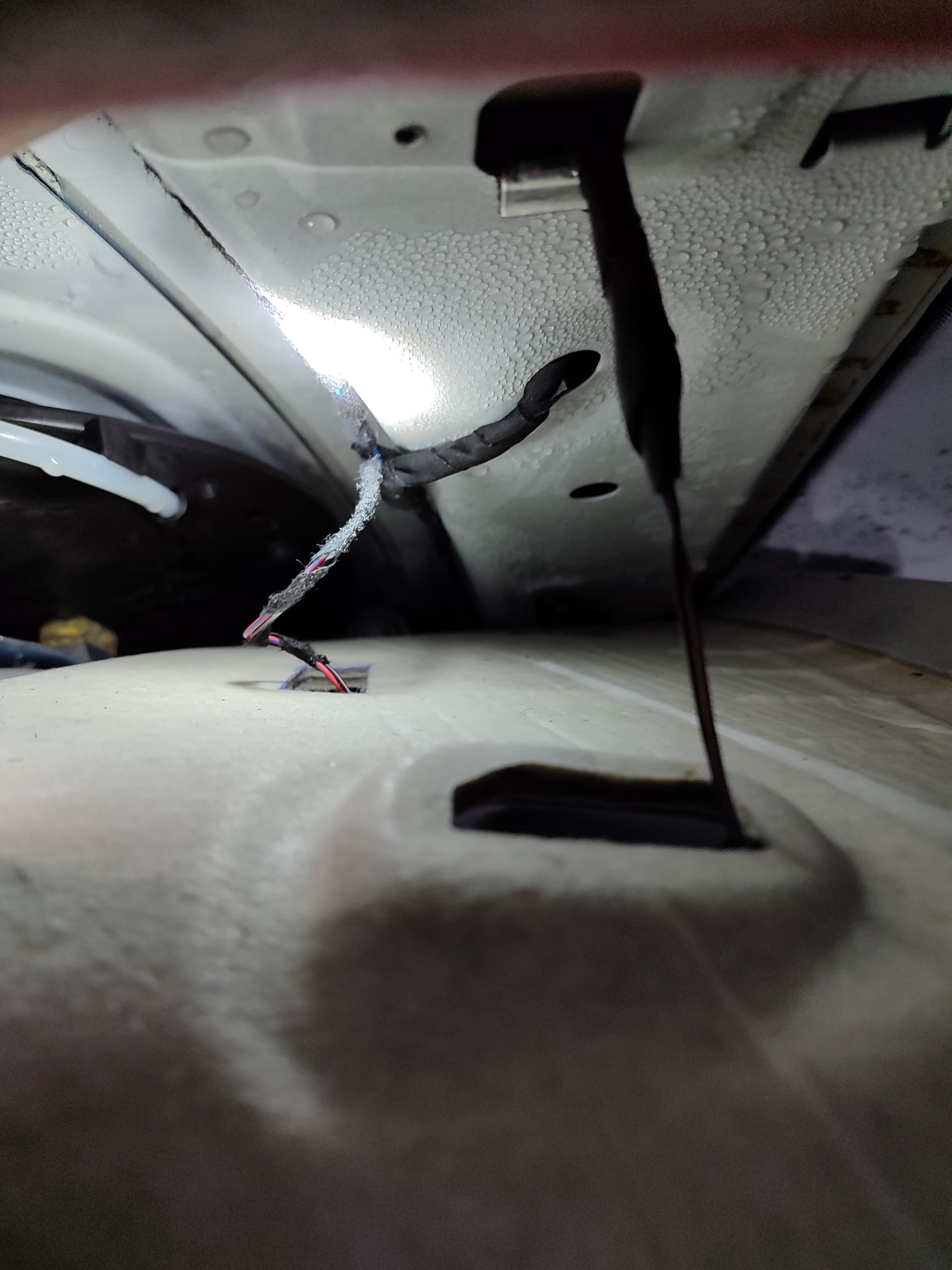 Ich habe nun den Himmel rechtsseitig abgebaut und das gesamte Dach in dem Bereich weist Wasser auf (Tröpchen). Weiterhin habe ich die Dachabläufe gecheckt. Diese sind frei und das Testwasser lief gut durch. Auch die Schlauchverbindungen scheinen oben fest zu sitzen.