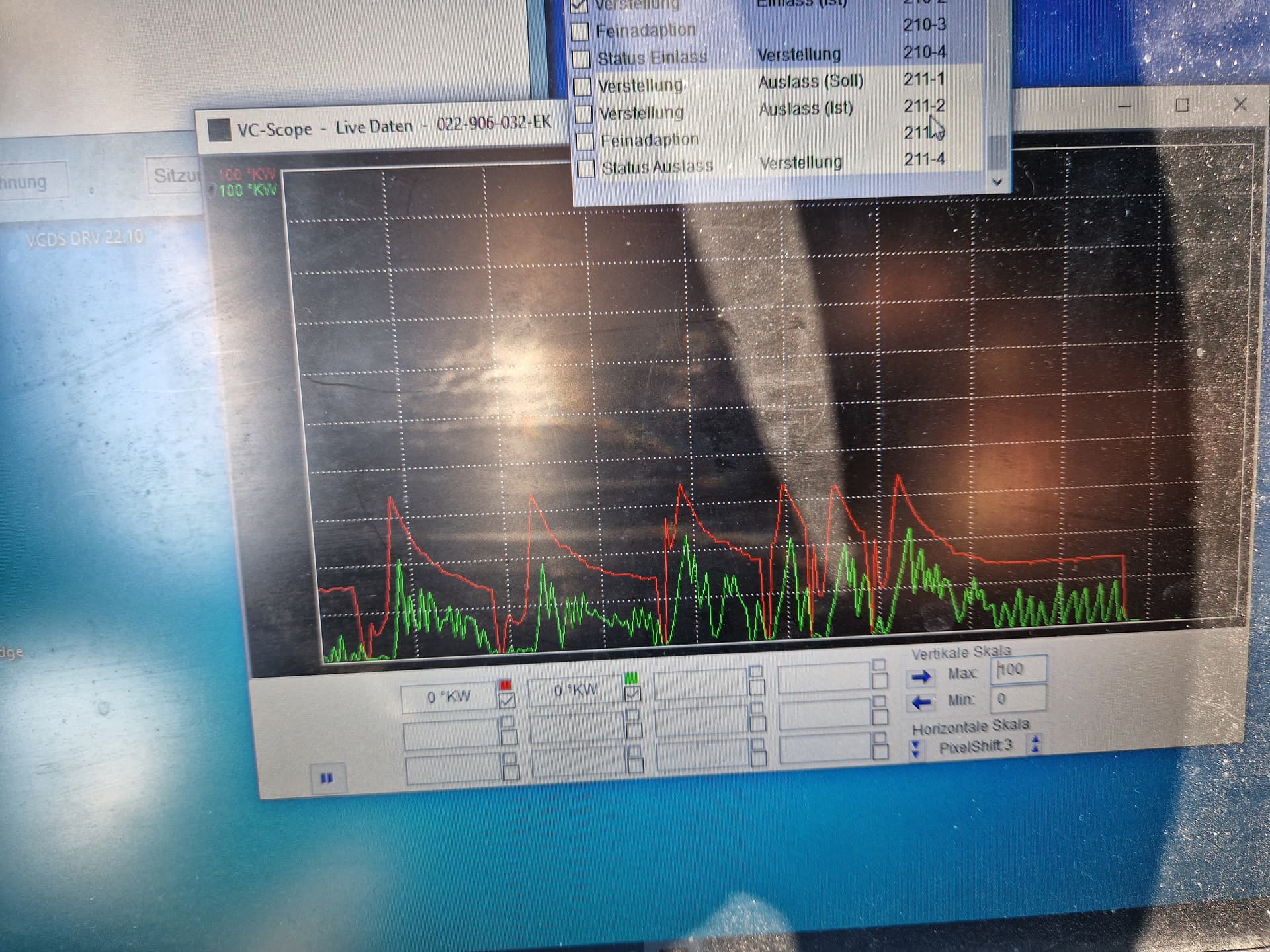 Das Sieb sah aus wie neu. Weder verdreckt noch defekt. Dann habe ich auch die versteller selber auseinandergebaut und gereinigt. Der Auslassversteller war tatsächlich irgendwie so ein bischen „schleimig“. Der Einlassversteller top. Dann habe ich alles wieder zusammengebaut und habe nach wie vor den Gleichen Fehler. Er bekommt einfach den Istwert nicht angepasst.
