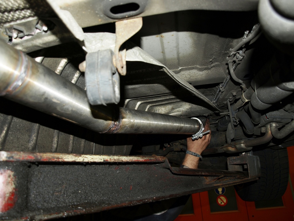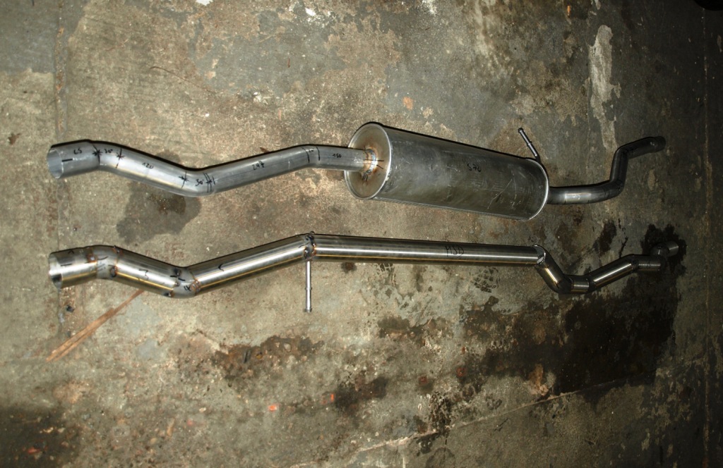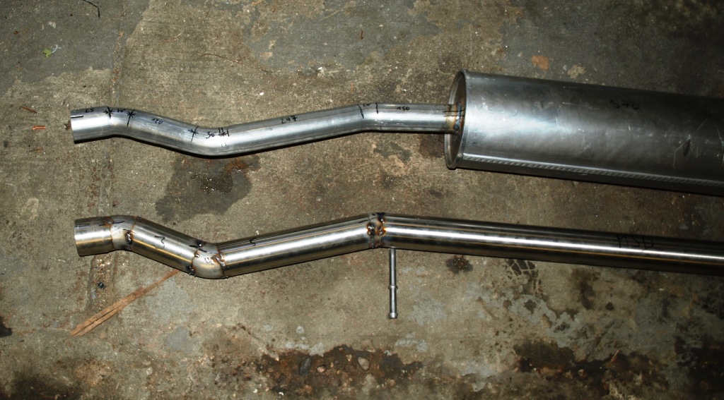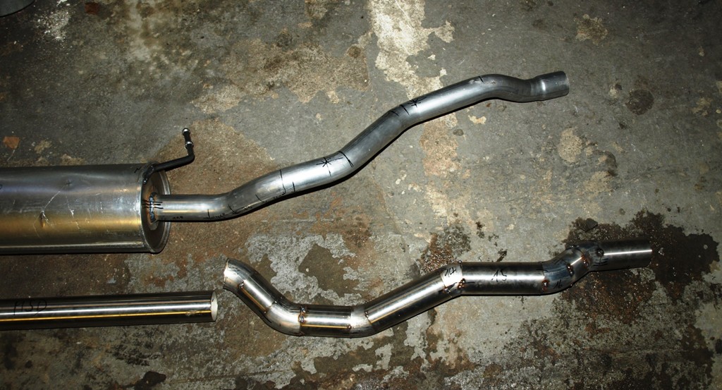 Damit mein Motörchen nicht immer durch den Serien-Strohhalm ausatmen muss, haben wir jetzt die gesamte Abgasstrecke mit 60mm-Edelstahlrohr gebaut. Angefangen vom Downpipe, Kat, MSD (entfallen) bis zum ESD. Den Remus-ESD haben wir übrigens so gelassen, wie er ist. Hier mal ein paar Impressionen: