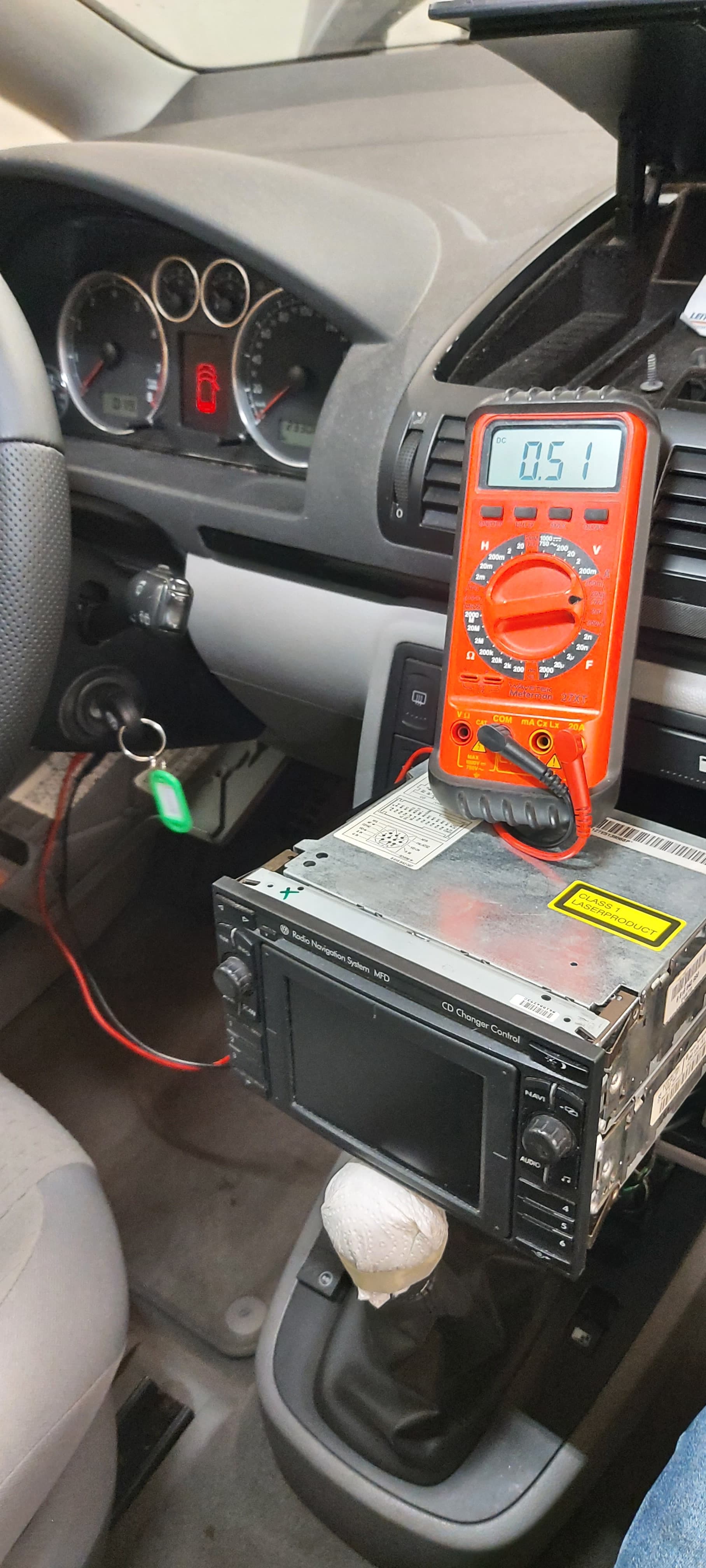 In dem Fall würde ich dann das Teil auch noch rausbauen, einfach um einen potentiellen Störer weniger im Auto zu haben (ca. 5s nach dem Einschalten fließen kurz 220 mA, das könnte vom Verkehrsfunkzeug kommen). Ist dieses Verkehrsfunksteuergerät selber noch irgendwo angeschlossen? Falls nicht lasse ich es vielleicht doch einfach drin.