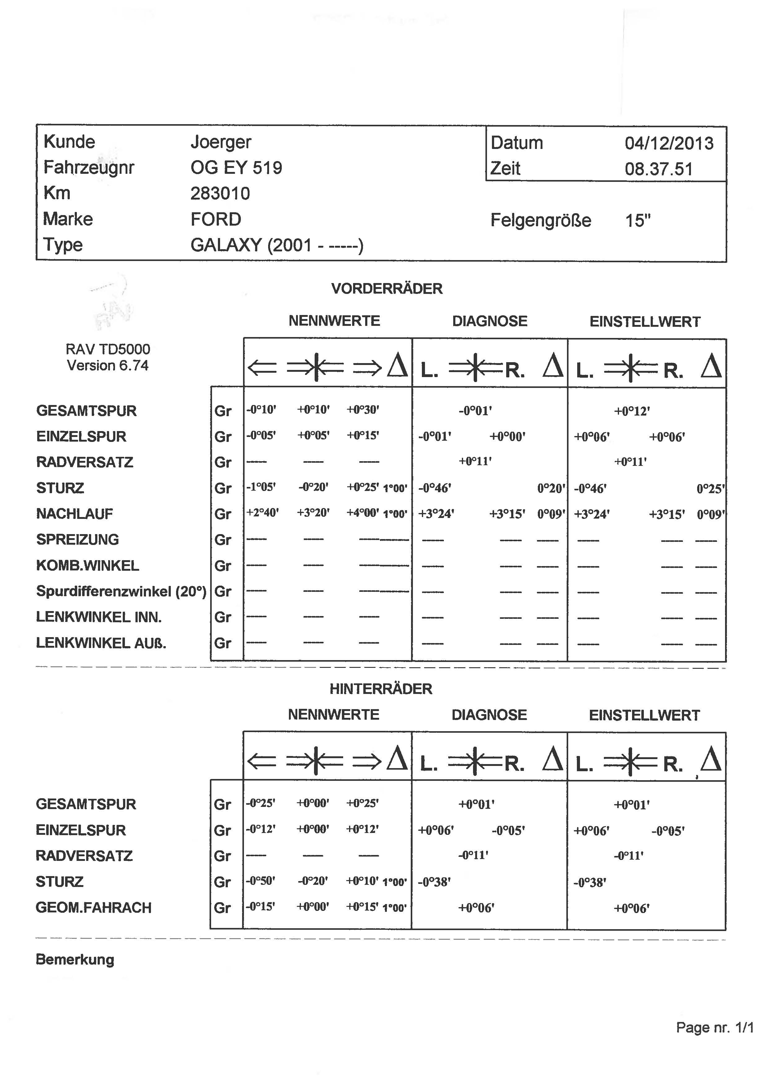 deine Spur war um 9 Winkelminuten verstellt. Das ist zwar nicht optimal, aber im Toleranzbereich des Fahrzeugs.