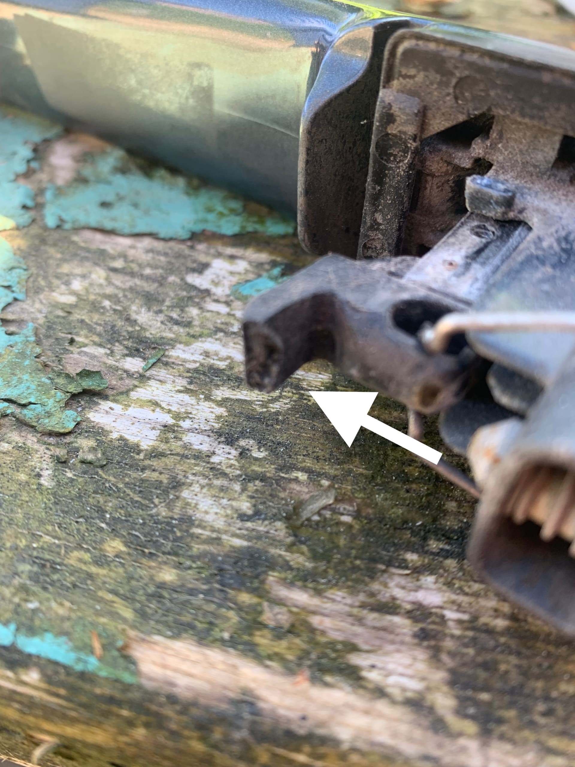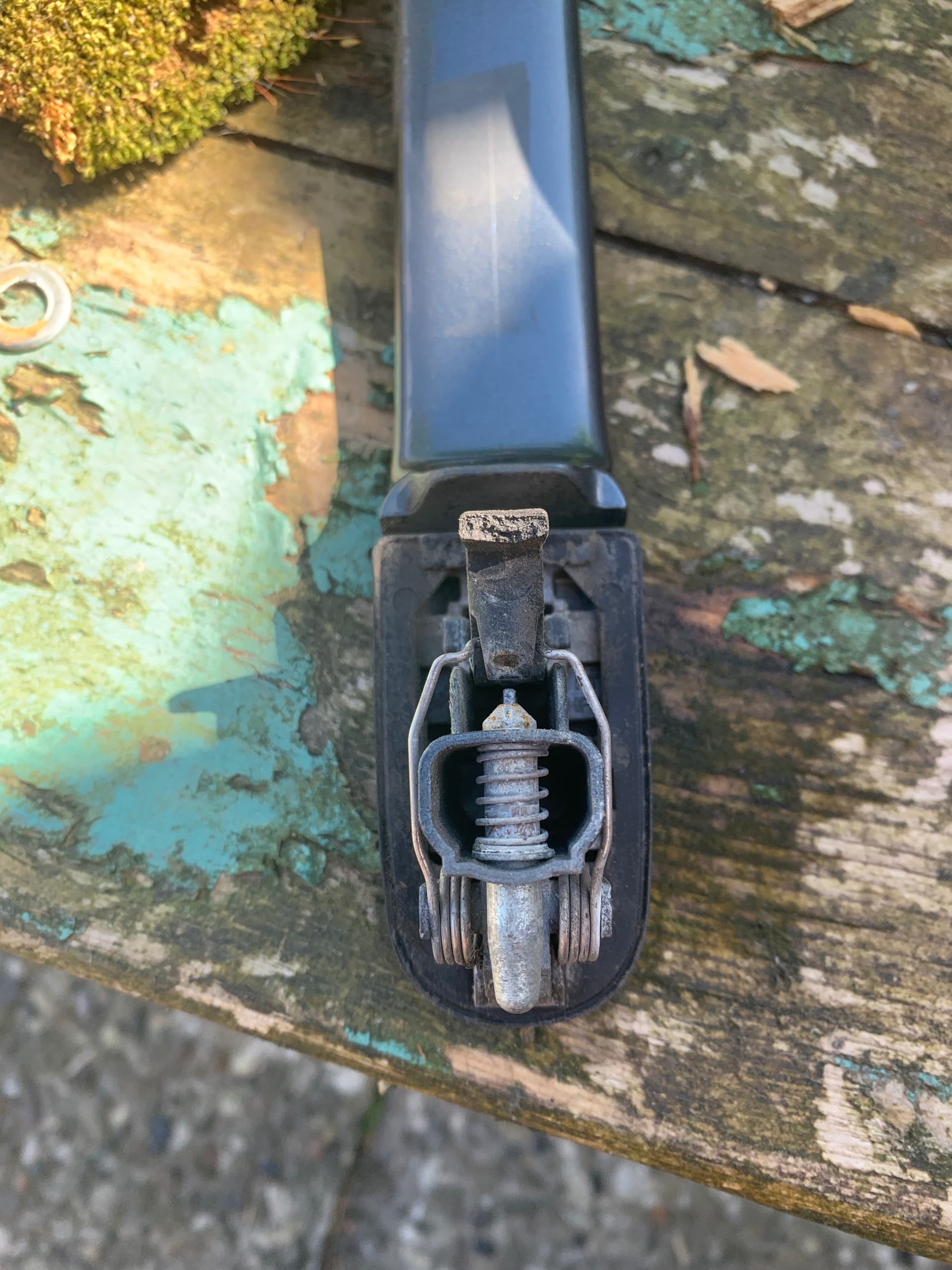 Jedenfalls ist er draußen und meine das Problem erkannt zu haben (siehe Foto). Es scheint wohl ein Stück abgebrochen zu sein, welches die Entriegelung mitnimmt. Wenn ich das richtig erkenne, ist aber dieses Stück „Gusseisen“ mit dem Griff fest verbunden. Oder liege ich da falsch und man kann dieses Teil vom Griff lösen?