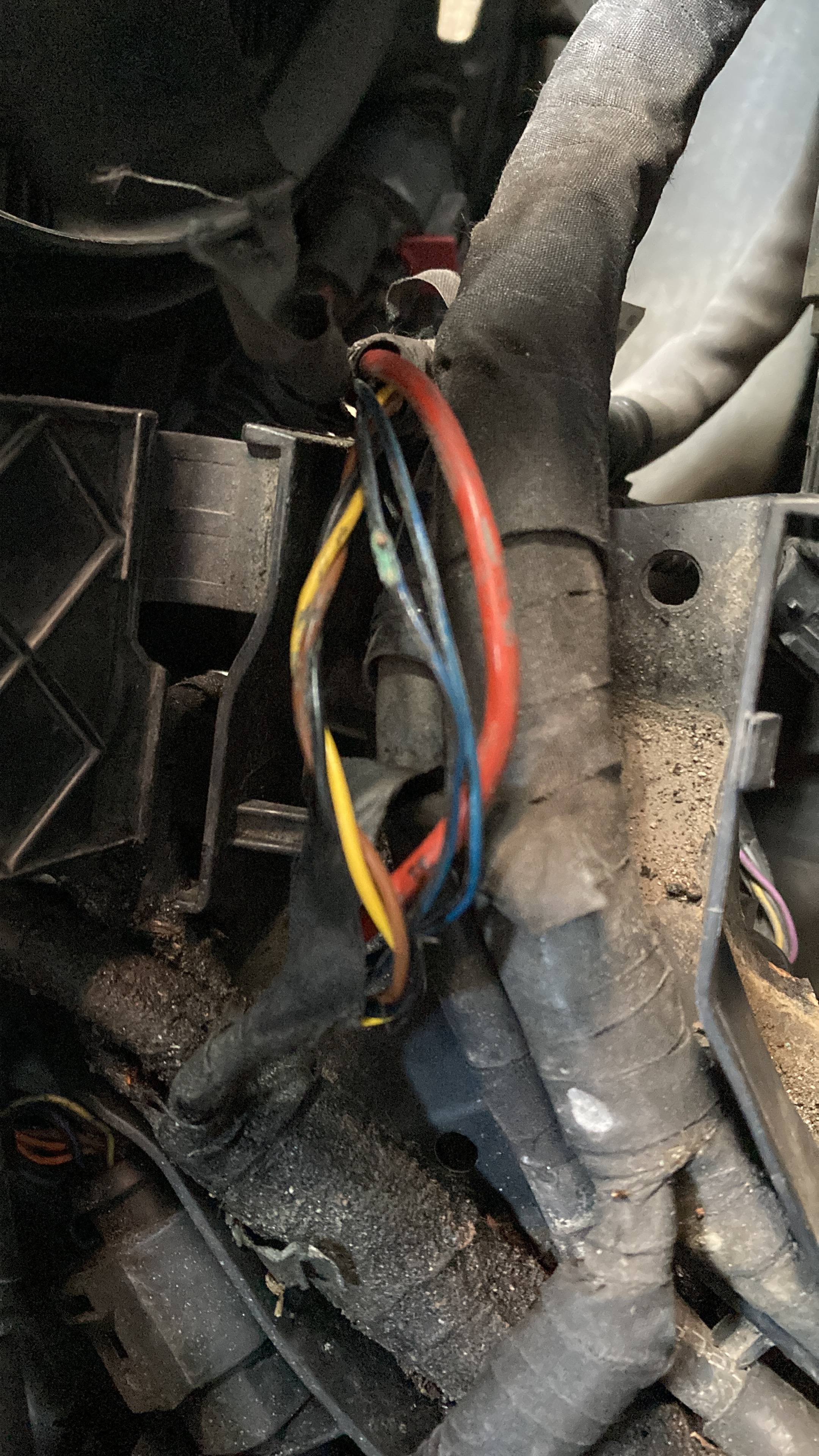 Es ist an einer Stelle zwischen einem großen Stecker und der Karosserie verlegt und an der Stelle hat es sich über die Jahre durchgescheuert.