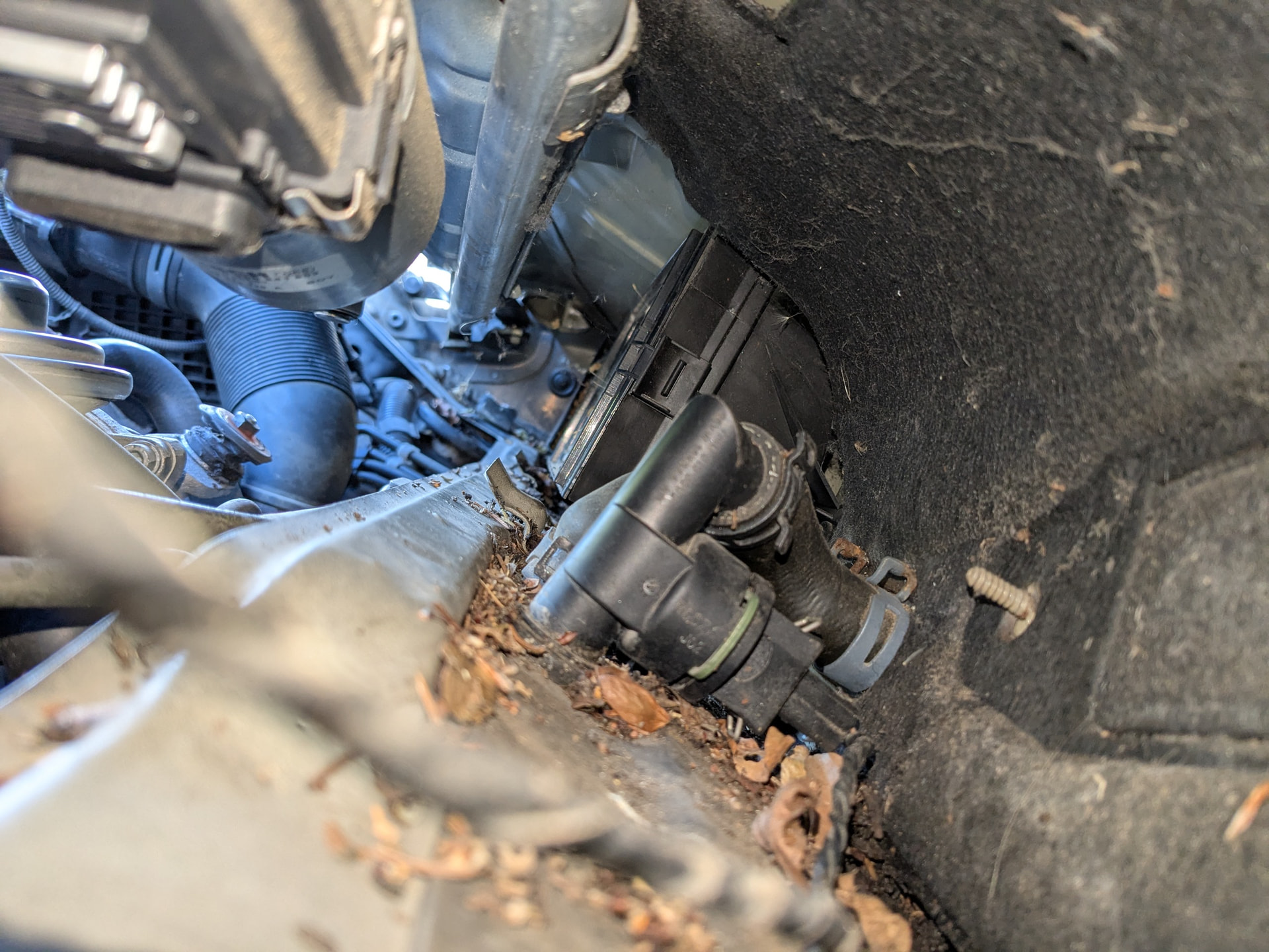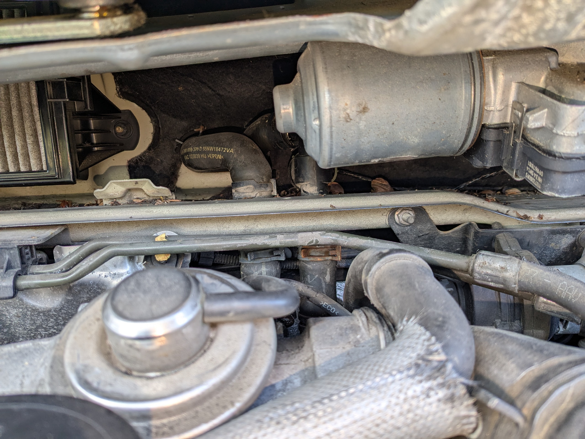 Den Kühlmittelgeruch war schon zu riechen, kam jedoch möglicherweise von anderer Stelle. Aber der Kühlmittelverlust war falscher Alarm: Ich hatte ca. 2 Monate vorher von der Vertragswerkstatt einen neuen Kühler (also den eigentlichen Kühler vorne) einbauen lassen. Die hatten offensichtlich das System nicht oder nur unzureichend entlüftet, die Luft ist nach und nach im Kühlmittelausgleichsbehälter gelandet und so fehlte dort plötzlich ein halber Liter. Was ich erst bemerkt habe, nachdem mir der Geruch aufgefallen ist. Hätte ich mal vorher nach dem Kühlmittelstand sehen sollen…