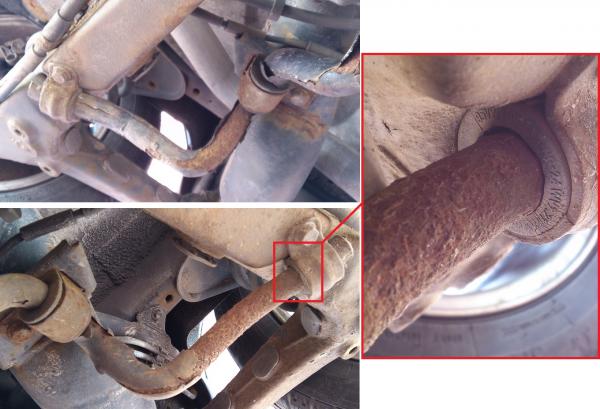 Man sieht im rechten Bild sehr schön den tatsächlichen Zustand des Stabilisators. Dieser hier sollte im Grunde lieber direkt ausgetauscht werden.
