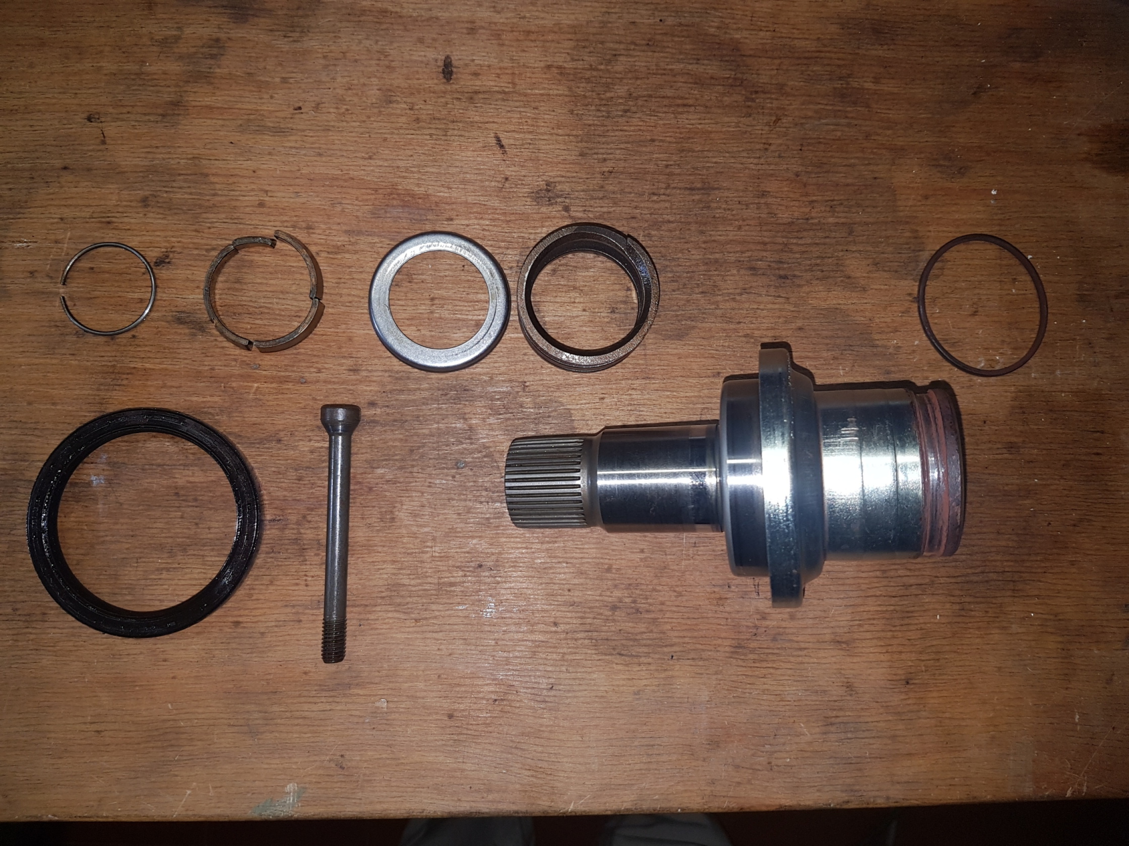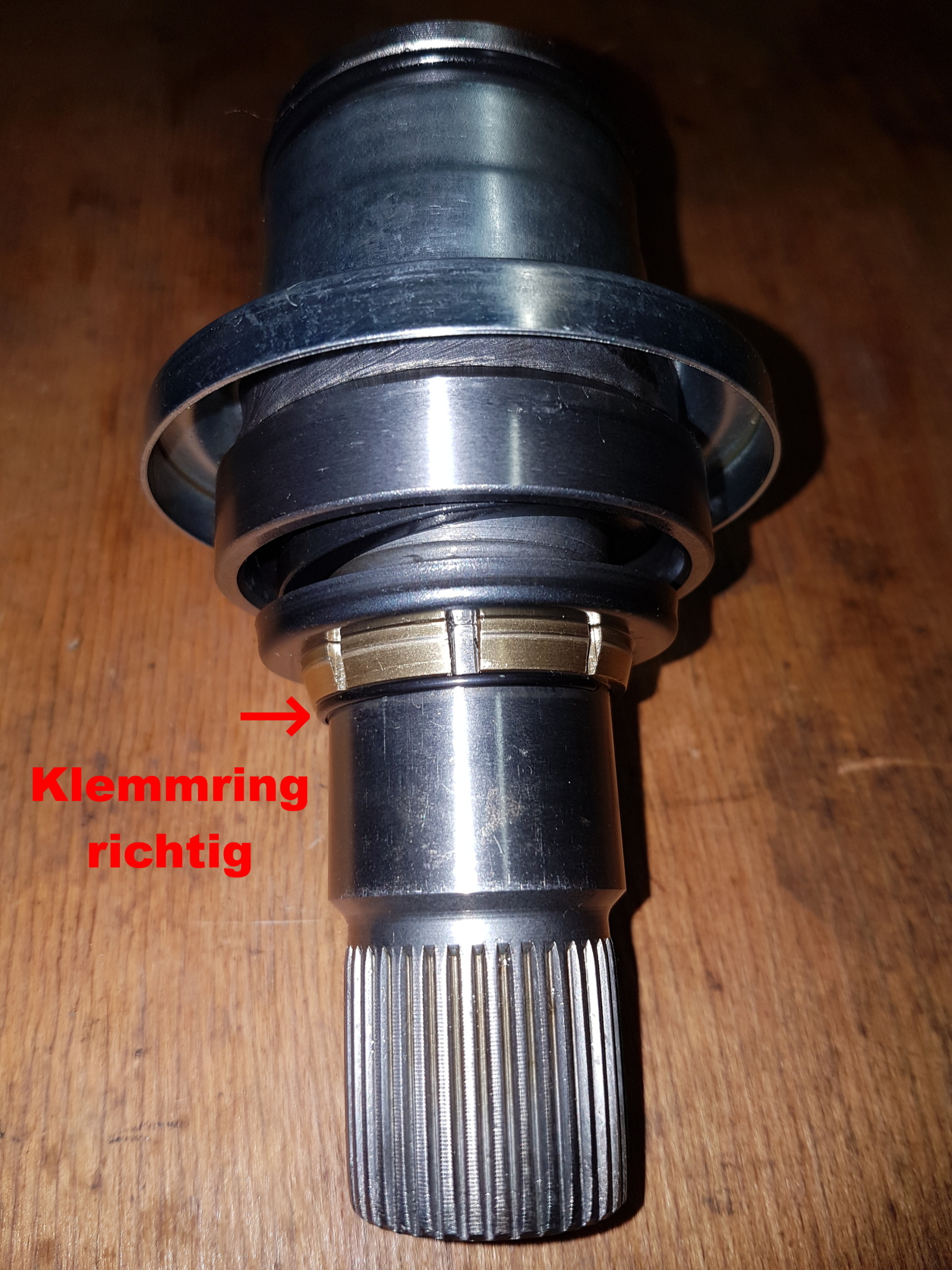 Nach Zusammenbau der Chose ölte es deutlicher aus der Steckwellenöffnung als vorher. Nebenbei war die Passgenauigkeit des Metallkorbes (Abdeckung der Dichtring/Federgeschichte) schlecht und schliff in der Gehäusebohrung.