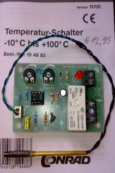 Bei Conrad bekommt man einen Temperaturschalter als Bausatz. Diesen bekommt man für kleines Geld (€ 12,95) unter der Best.-Nr. 194883 und er erfüllt den gleichen Zweck wie das Original.