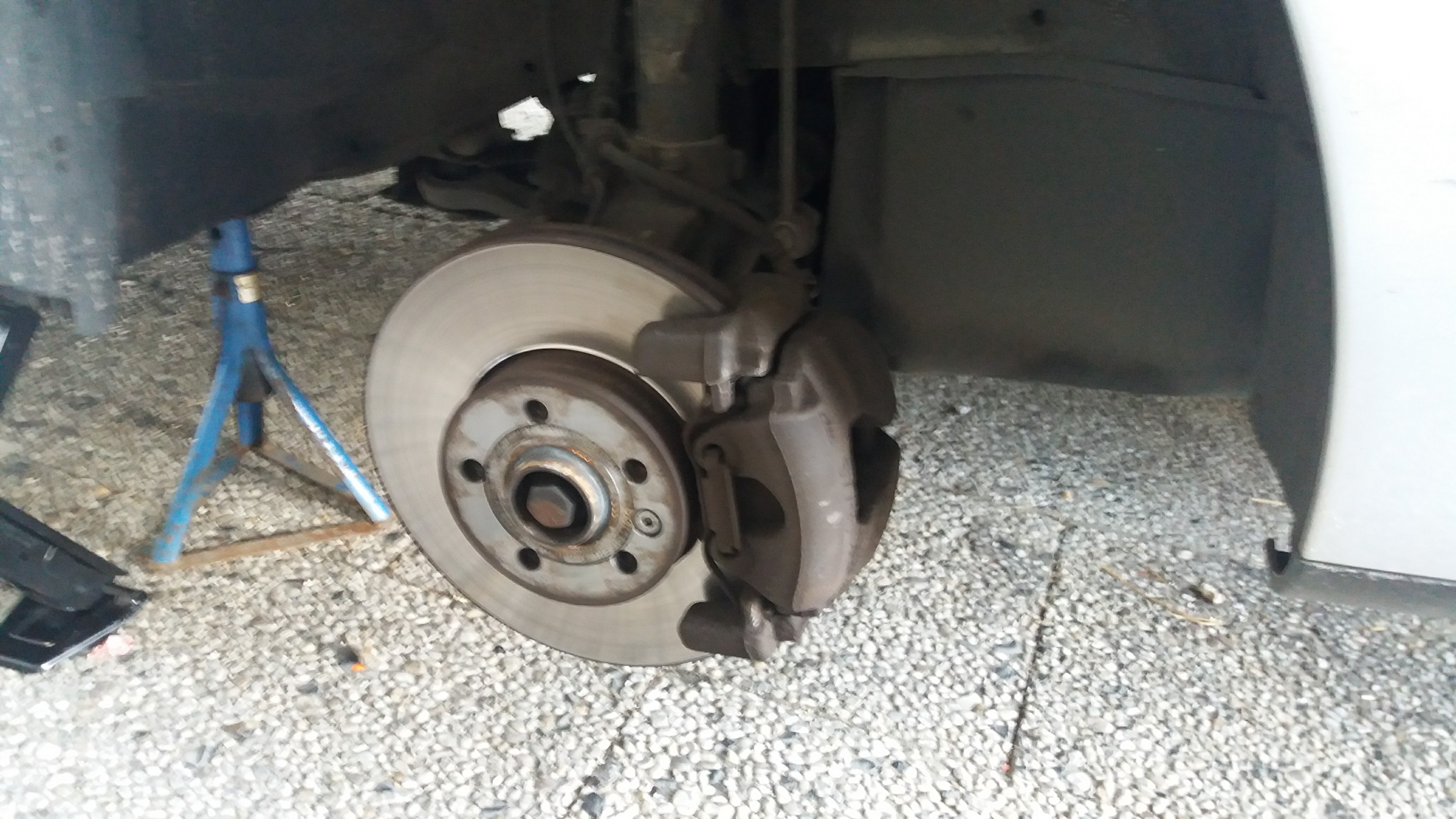 Nun noch eine Sache die sehr wichtig ist . Ist das neue Gelenk montiert und alles ist festgeschraubt dann bitte darauf achten das das Blech am Lager nicht an der Bremsscheibe schleift. Das Blech dann etwas zum Gelenk hin biegen .