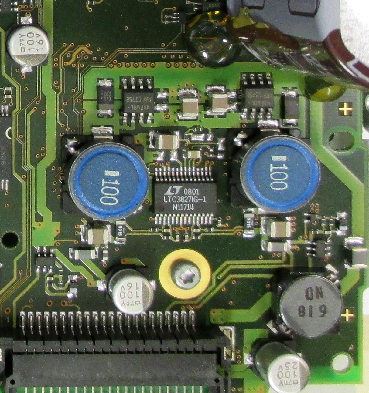 Hier mal ein Detailbild von einem der Spannungsregler auf der Oberseite des Mainbaords:
