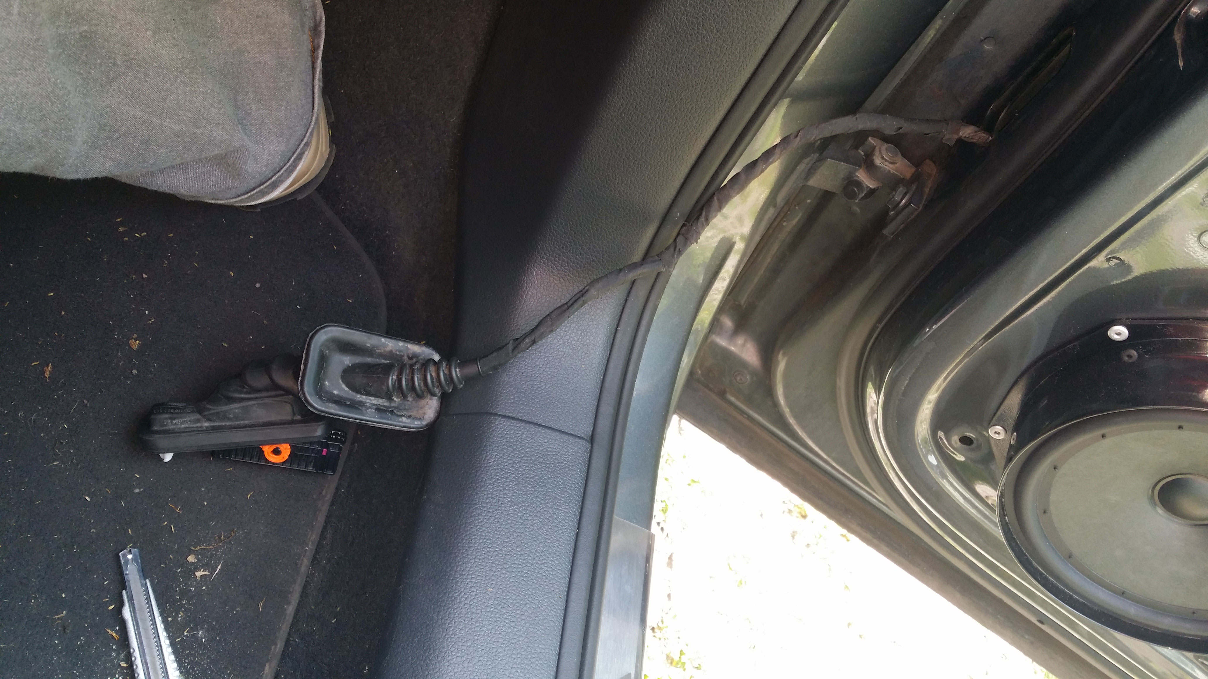 Leider ist der Platz in dem Bereich nicht gerade üppig. Es ist zu überlegen ob man für eine Reparatur der Kabel die Tür aushängt. Dazu muss nur das Türfangband an der A-Säule gelöst werden und die Schraube, welche in jedem Gelenk den Zapfen arretiert.