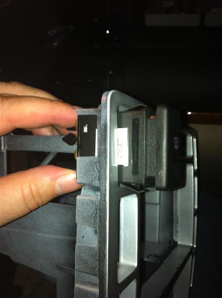 In den unteren beiden Ecken des Einschubs für die Klimaeinheit müssen die beiden „Federklammern“ abgezogen/gelöst werden.