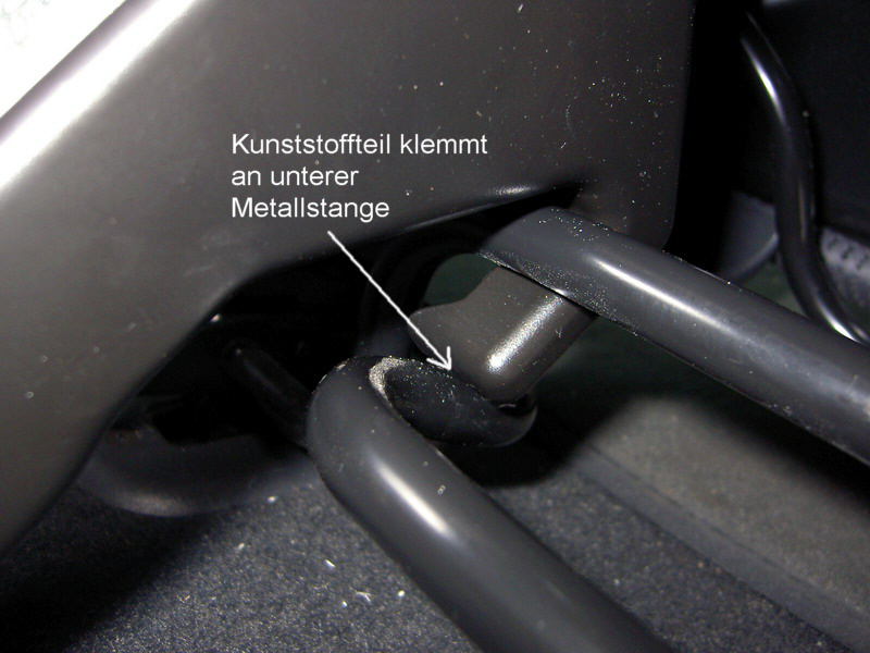 Bei meinem Sitz 2R „klemmt“ der Kunststoffteil auf der unteren „Stahlstrebe“ wie im Bild zu sehen. Beim mittleren z.B nicht.
