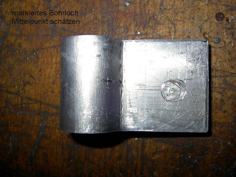 Das Bohrloch sitzt nicht mittig im flachen Stück des Aluteils.