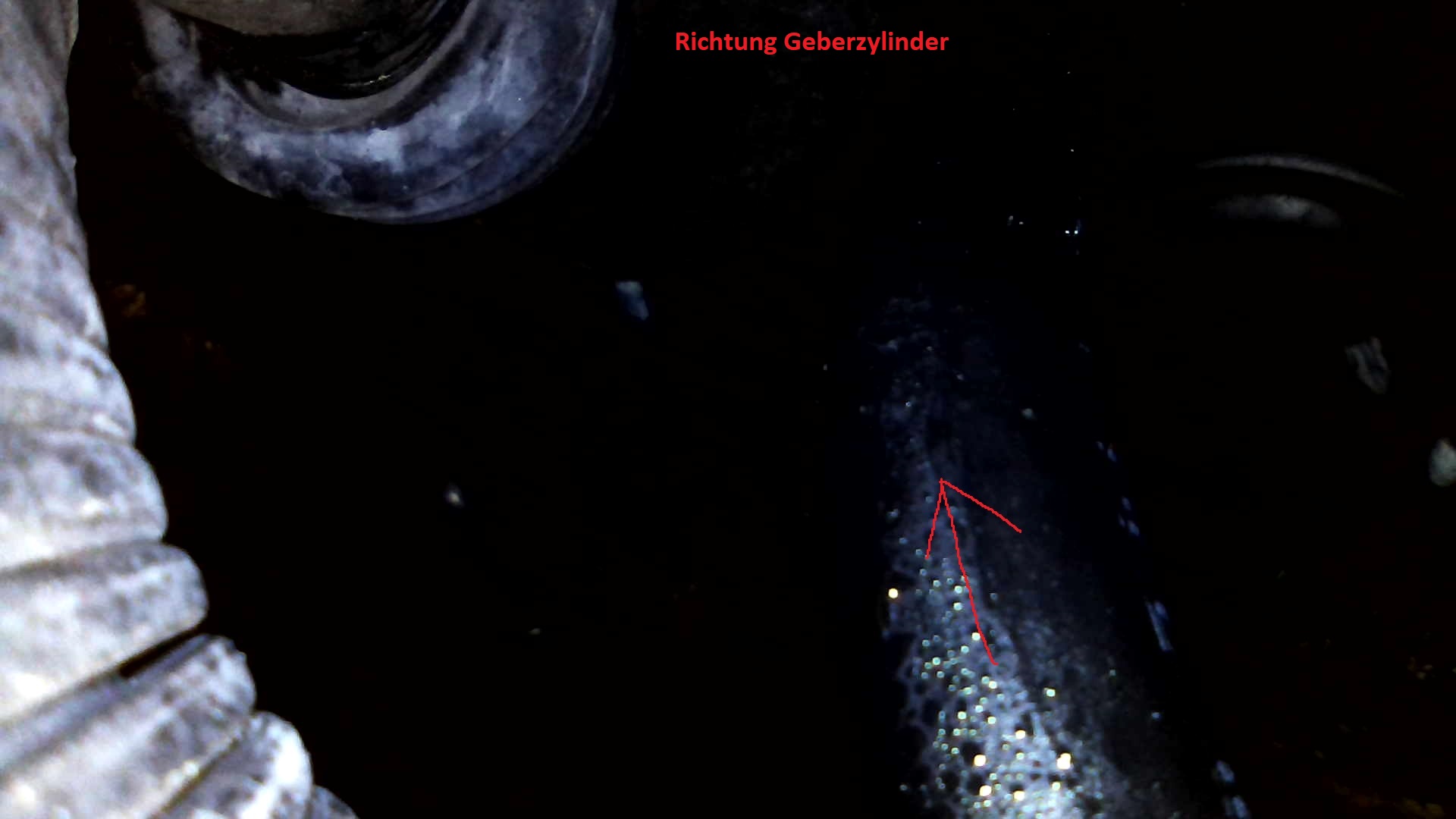 Tropfen hingen nach unten. Ich bin am Verzweifeln aber dennoch der Meinung, dass nicht zwangsläufig der Nehmerzylinder an meinem Undichtigkeits-Problem Schuld ist.