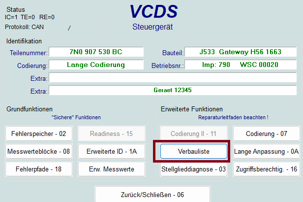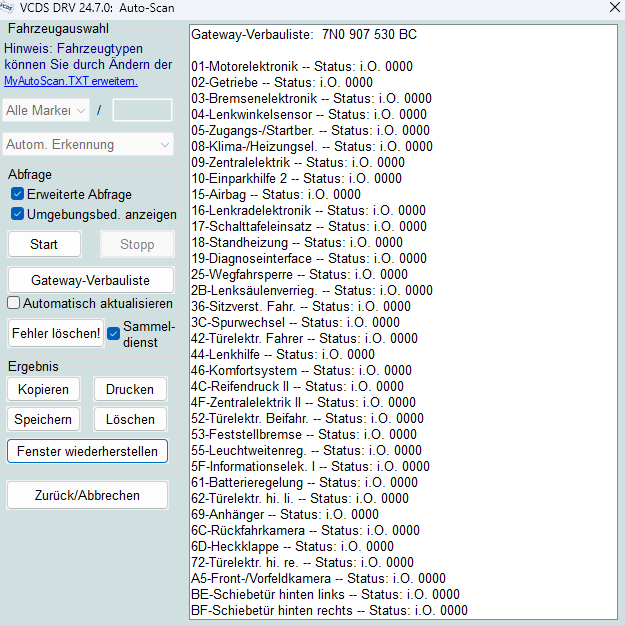 Bedeutet, du musst ins Steuergerät 19 Gateway (DiagnoseInterface) gehen und dort unter den Punkt Verbauliste die richtigen Steuergeräte auswählen.