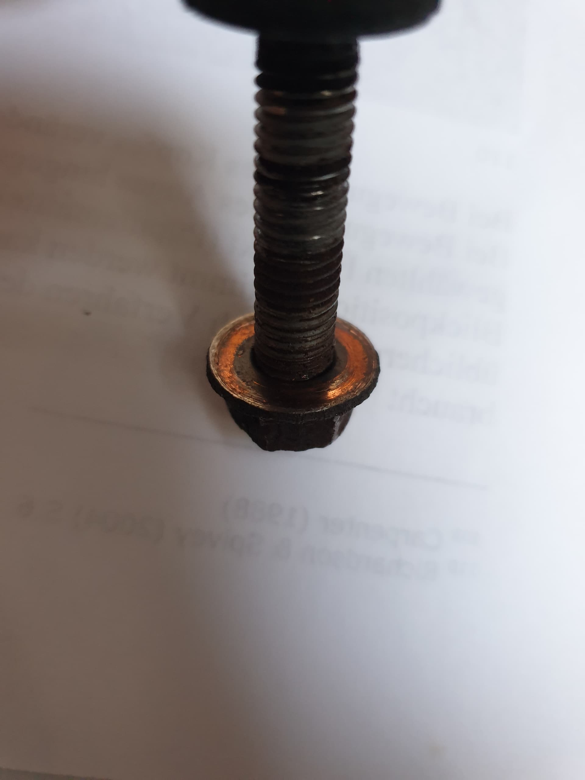 Ich habe heute eine der drei Schrauben unterhalb des Flexrohrs ausgebaut. Zumindest die Mutter war scheinbar eine kupferbeschichtete. Hat der Korrosion offensichtlich wenig entgegenzusetzen gehabt…
