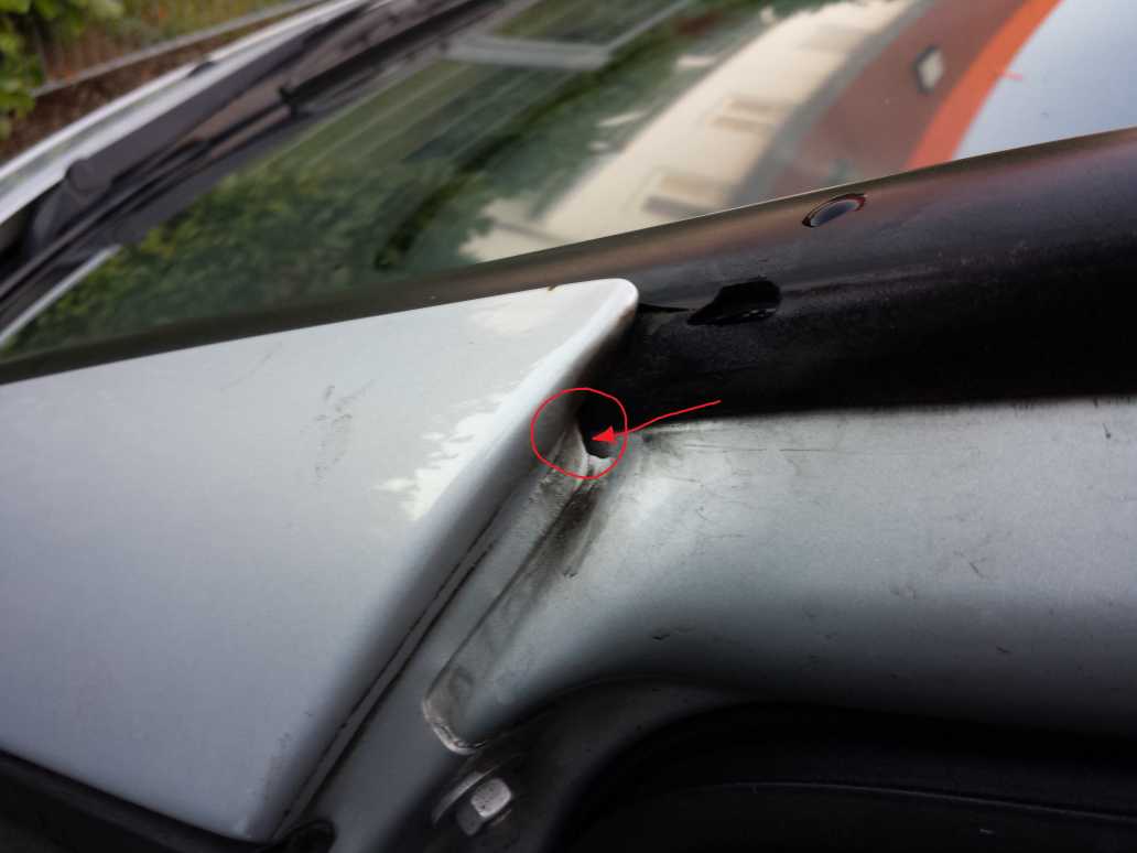 Sch… es geht wieder los. Nach 2 Regentagen kommt wieder Wasser hinein. Nachdem ich die Abdeckung neben dem Dreiecksfenster entfernt habe, fühlt man hinter dem Hochtöner, dass alles nass ist, auch weiter entlang der Scheibe, wenn man die Finger hinter die Verkleidung drückt, ist alles nass.