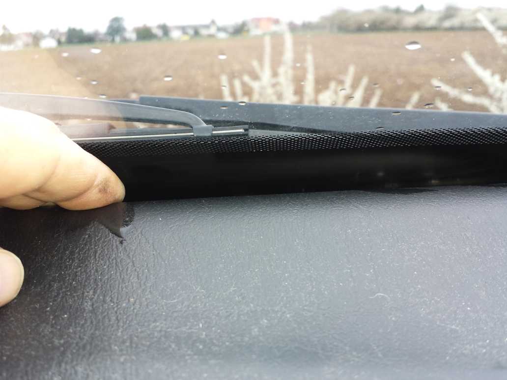 Den hatte ich ja schon Draußen, als es das erste Mal nass war. Beschwören kann ich das nicht, aber der liegt doch niedriger als die Frontscheibe. Würde es darüber nass werden, müsste doch die Scheibe hinter dem Armaturenbrett trocken sein, oder irre ich?
