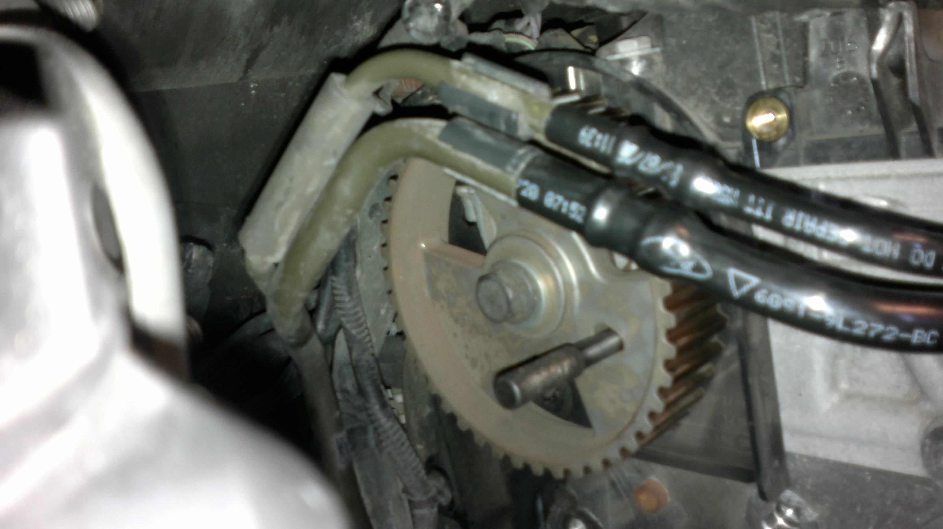 Nockenwelle fixieren. Jetzt wird der Kurbelwellenstellungssensor unten entfernt (dieses Teil ist mit Vorsicht zu genießen!).