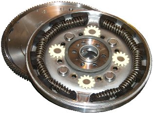 Das Zweimassenschwungrad ist eine Schwungscheibe des Motors die in zwei verdrehbar gelagerte Massen geteilt ist. Die beiden entkoppelten Massen dämpfen über ein Feder-,Fett-/Dämpfungssystem. Hohe Massenträgheit und ein großes Dämpfungsverhalten sind die Folge.